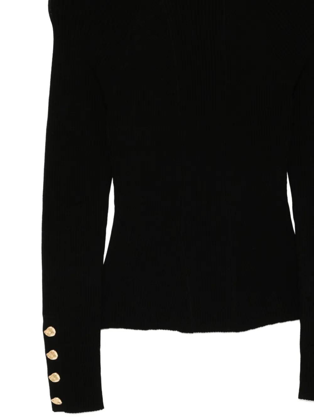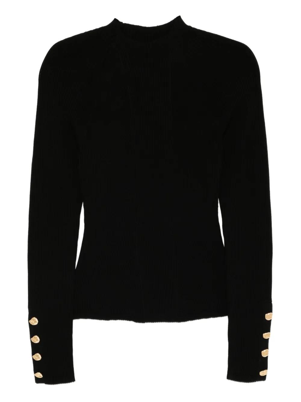 black/white/beige wool-cashmere blend knitted construction horizontal stripe pattern crew neck flocked motif long sleeves ribbed cuffs and hem straight hem