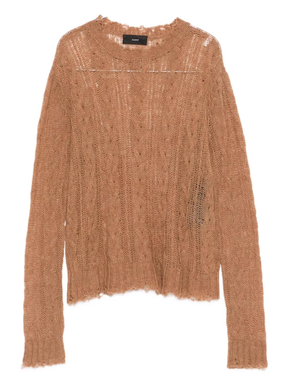 Alanui cable-knit frayed sweater - Brown