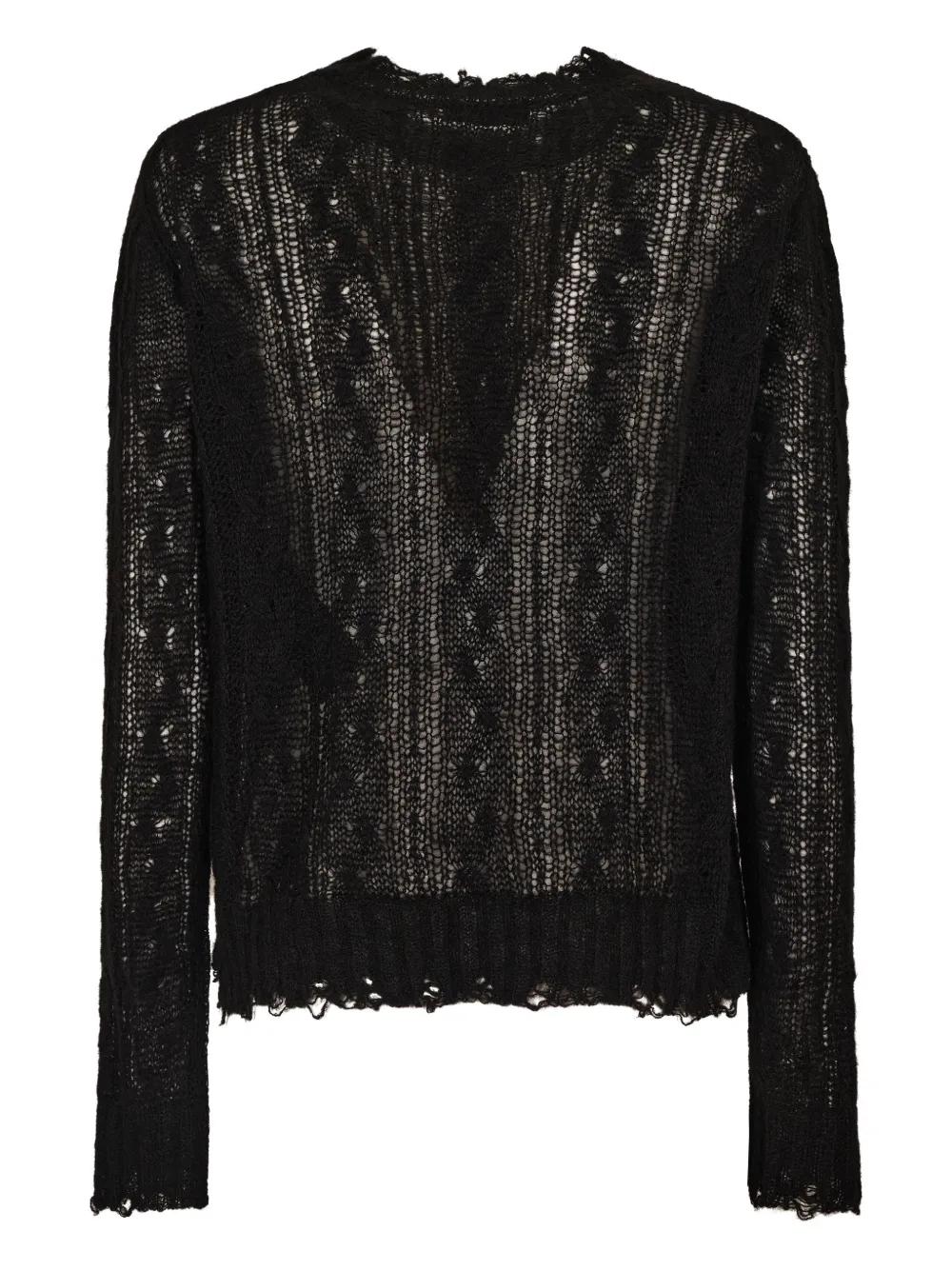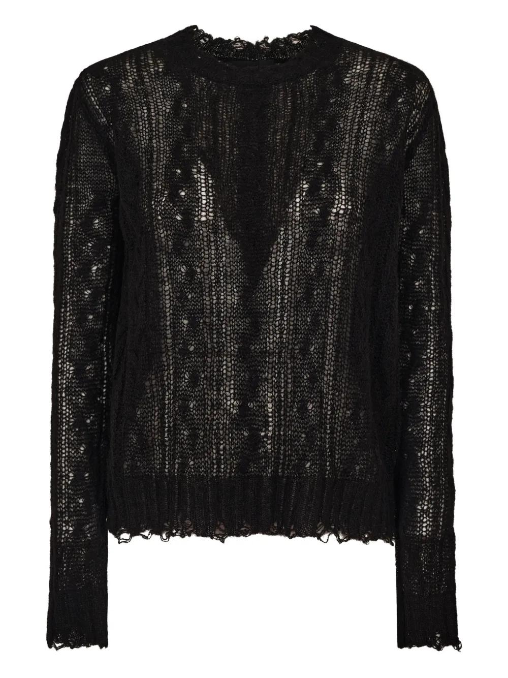 black openwork knit ruffled detail ribbed hem ribbed cuffs crew neck