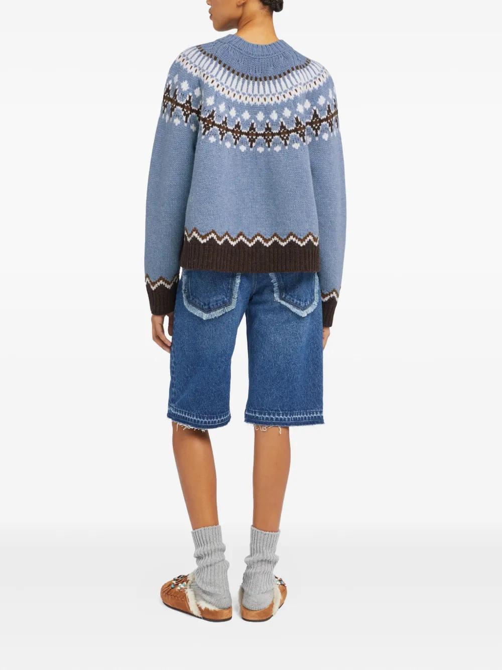 light blue fair isle pattern round neck long sleeves ribbed hem wool