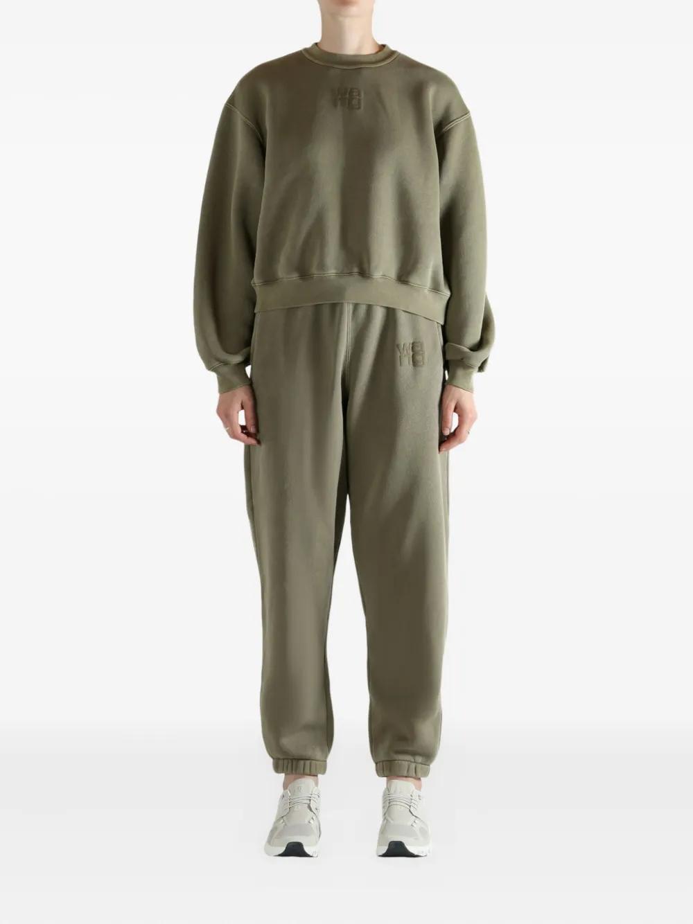 washed walnut embossed detail round neck long sleeves ribbed hem ribbed cuffs