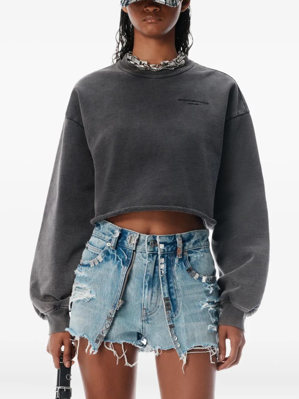 Alexander Wang embroidered-logo cropped sweatshirt - Grey
