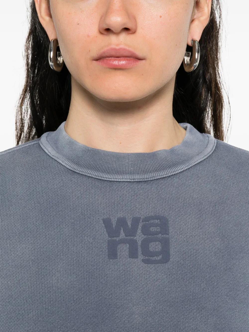 ice blue crew neck drop shoulder long sleeves ribbed cuffs and hem