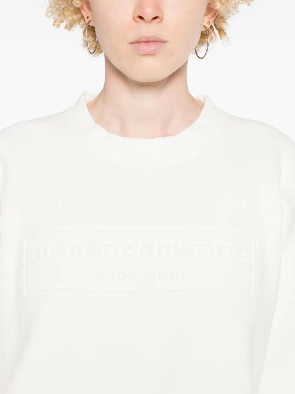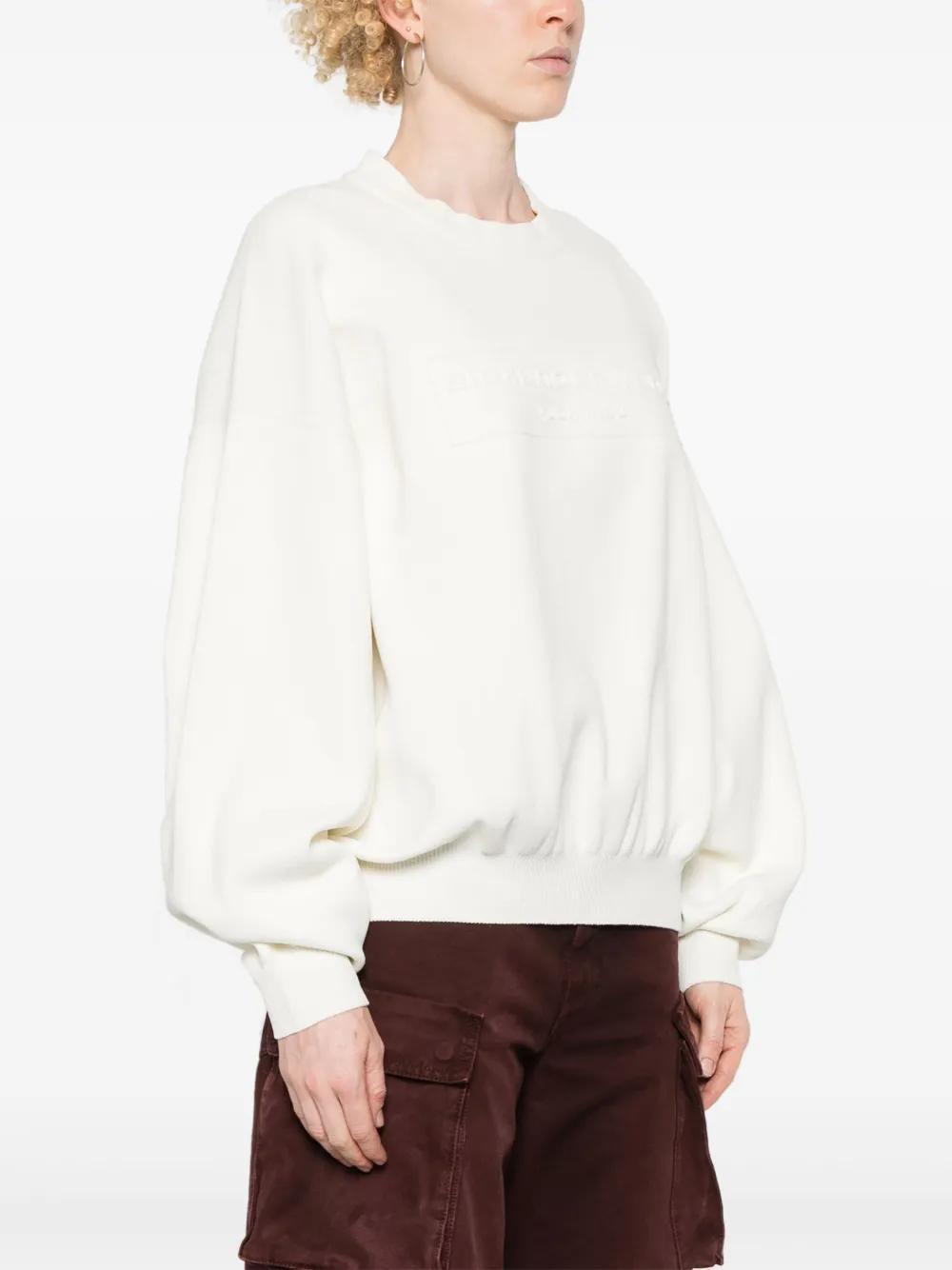 chalk white ribbed knit embroidered logo at the chest crew neck drop shoulder long sleeves ribbed cuffs and hem straight hem