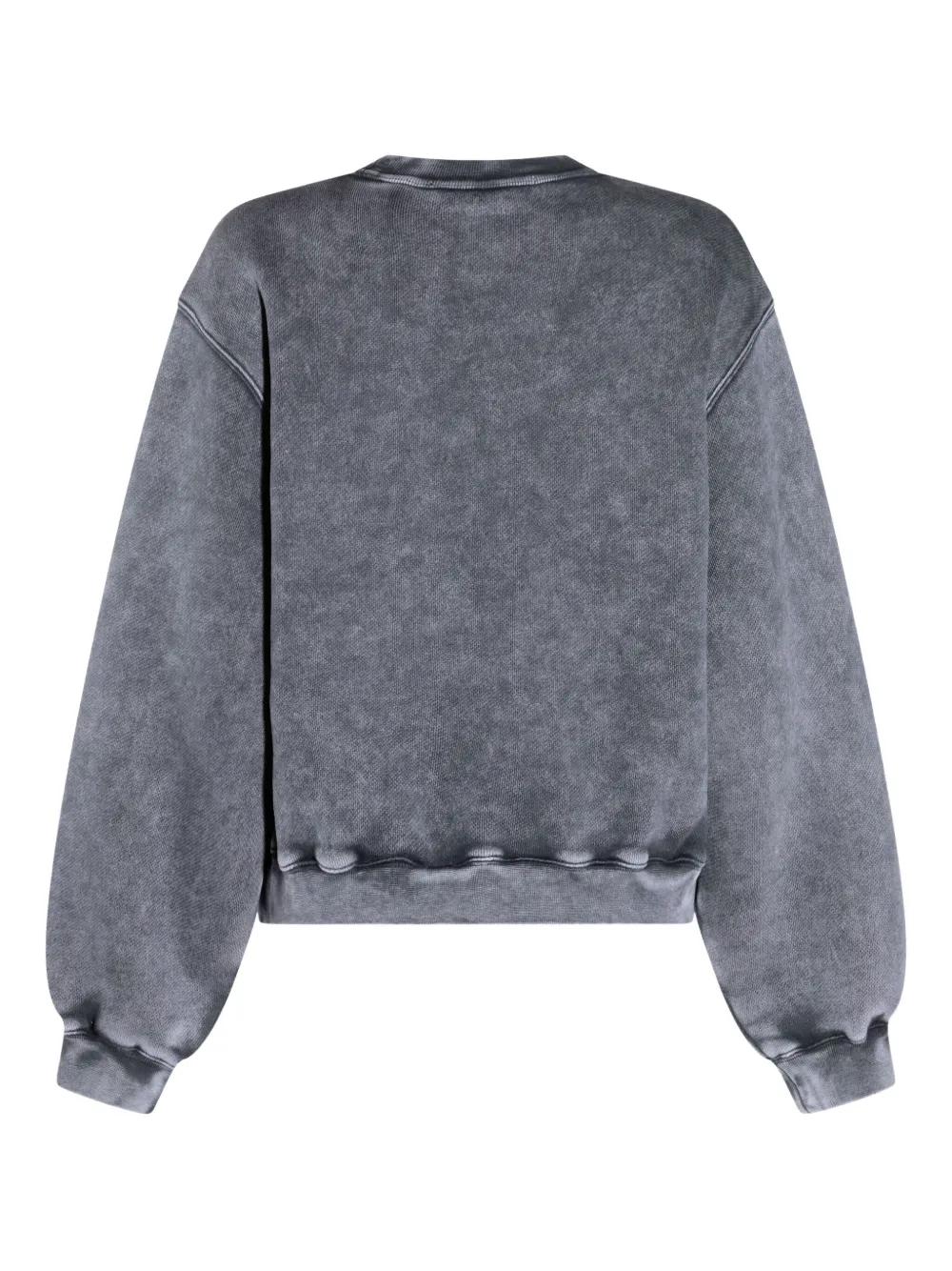 grey washed effect embroidered logo crew neck long sleeves ribbed cuffs ribbed hem