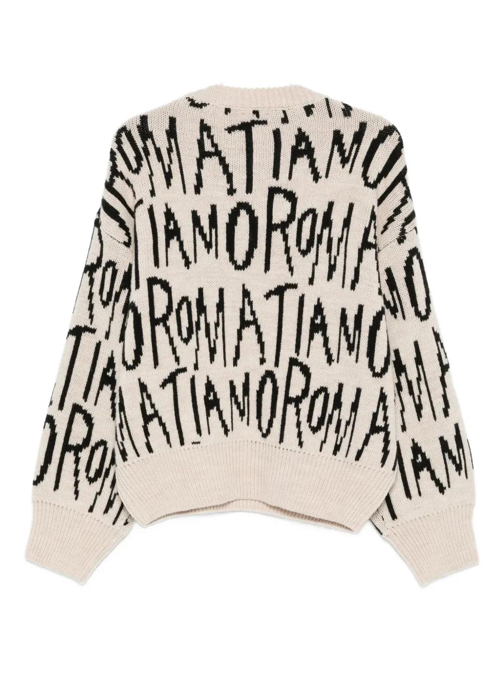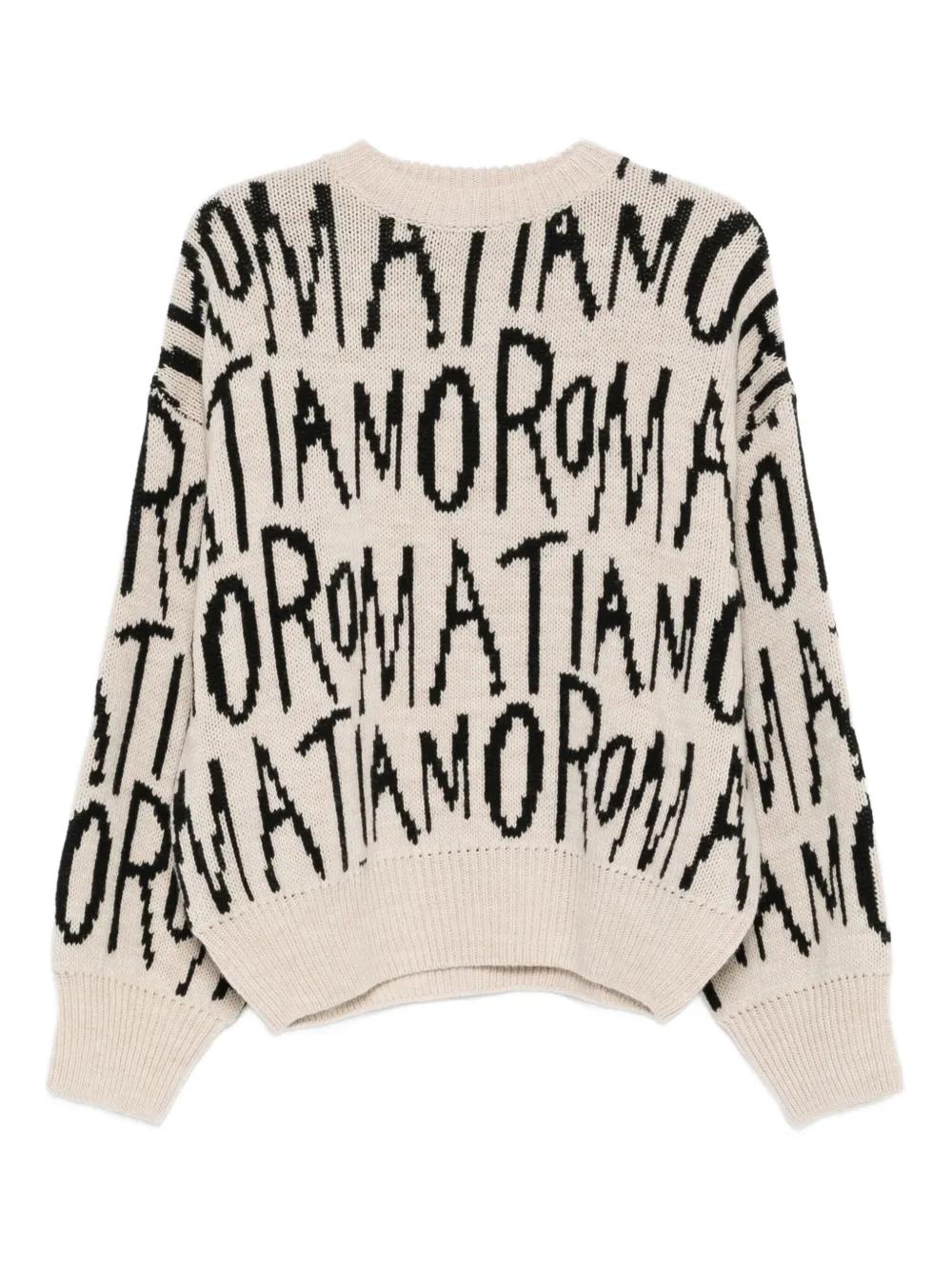 beige lettering knit round neck long sleeves ribbed hem ribbed cuffs