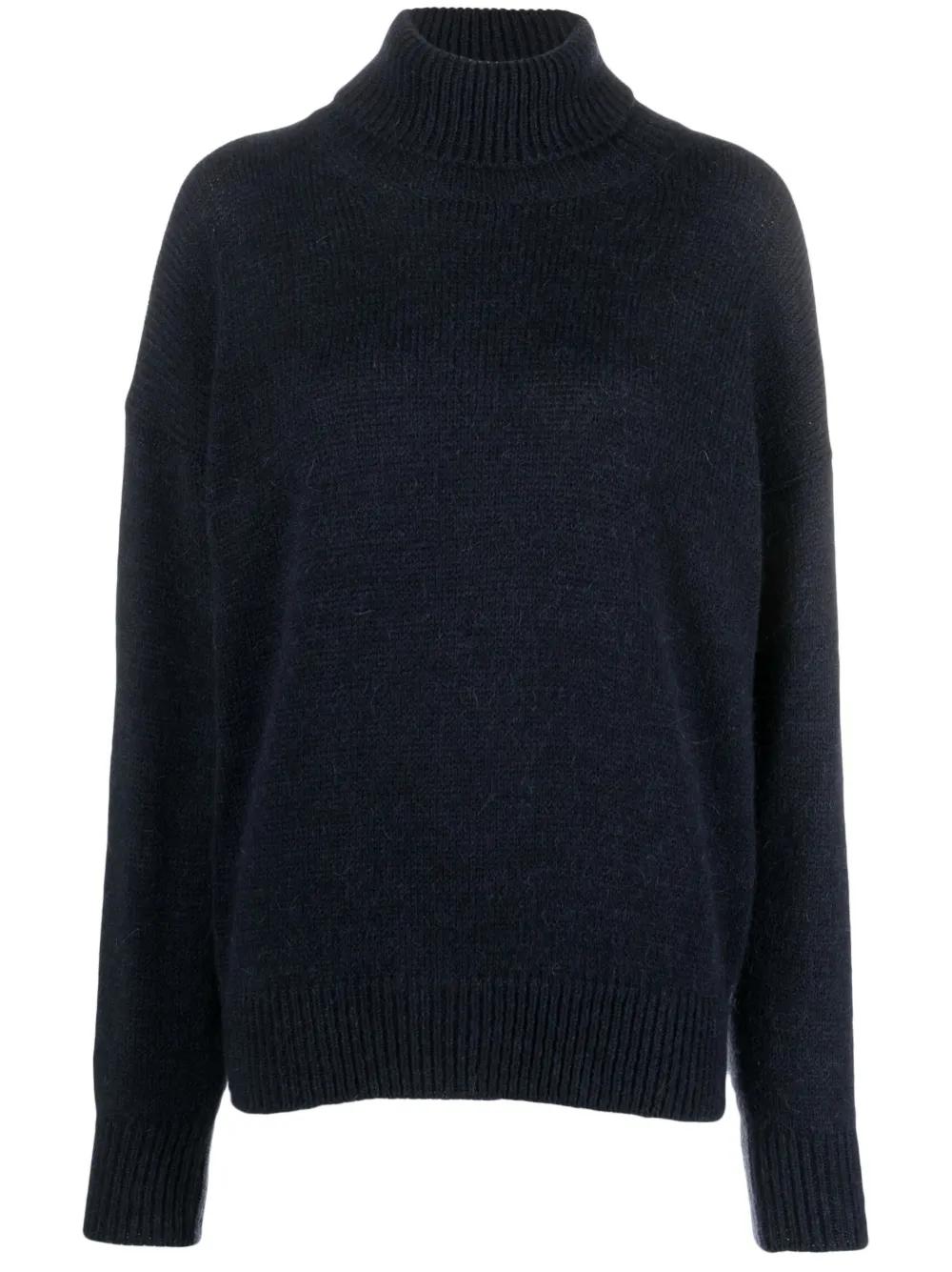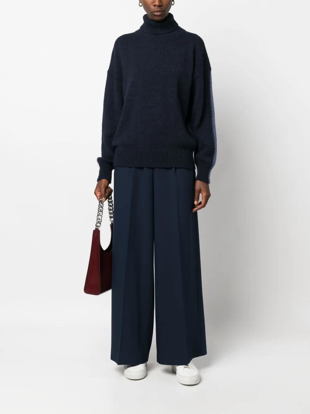 midnight blue/powder blue knitted construction two-tone design roll neck long sleeves ribbed cuffs and hem