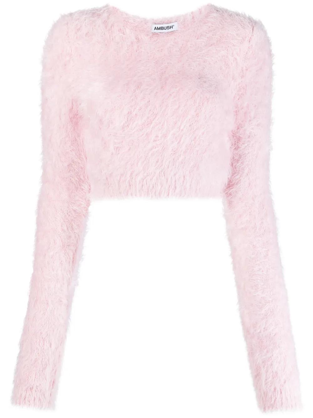 light pink knitted construction crew neck long sleeves cropped ribbed cuffs and hem