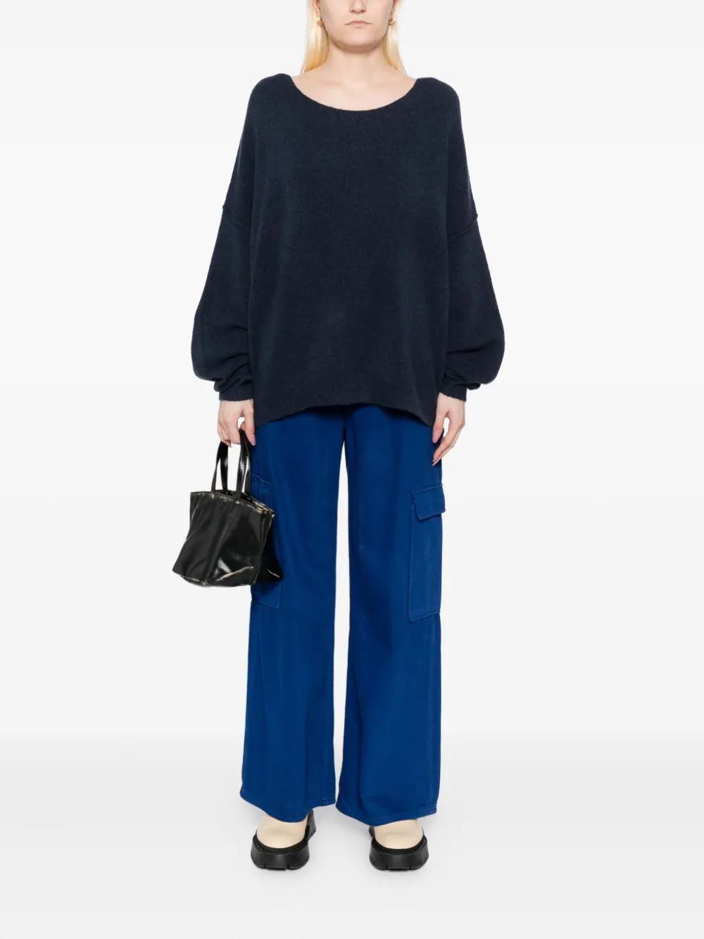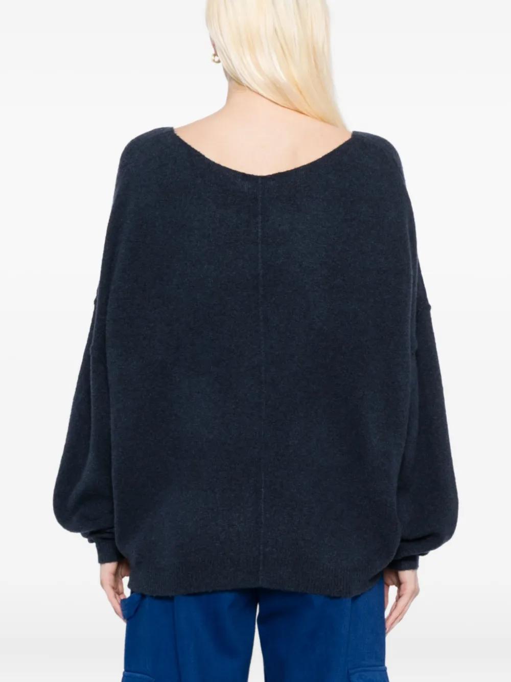 heather grey knitted construction scoop neck long sleeves ribbed cuffs and hem