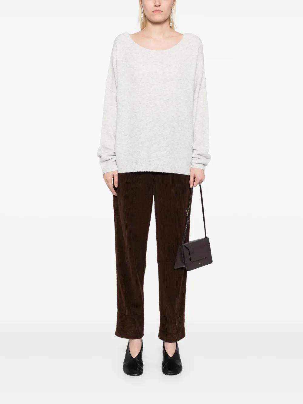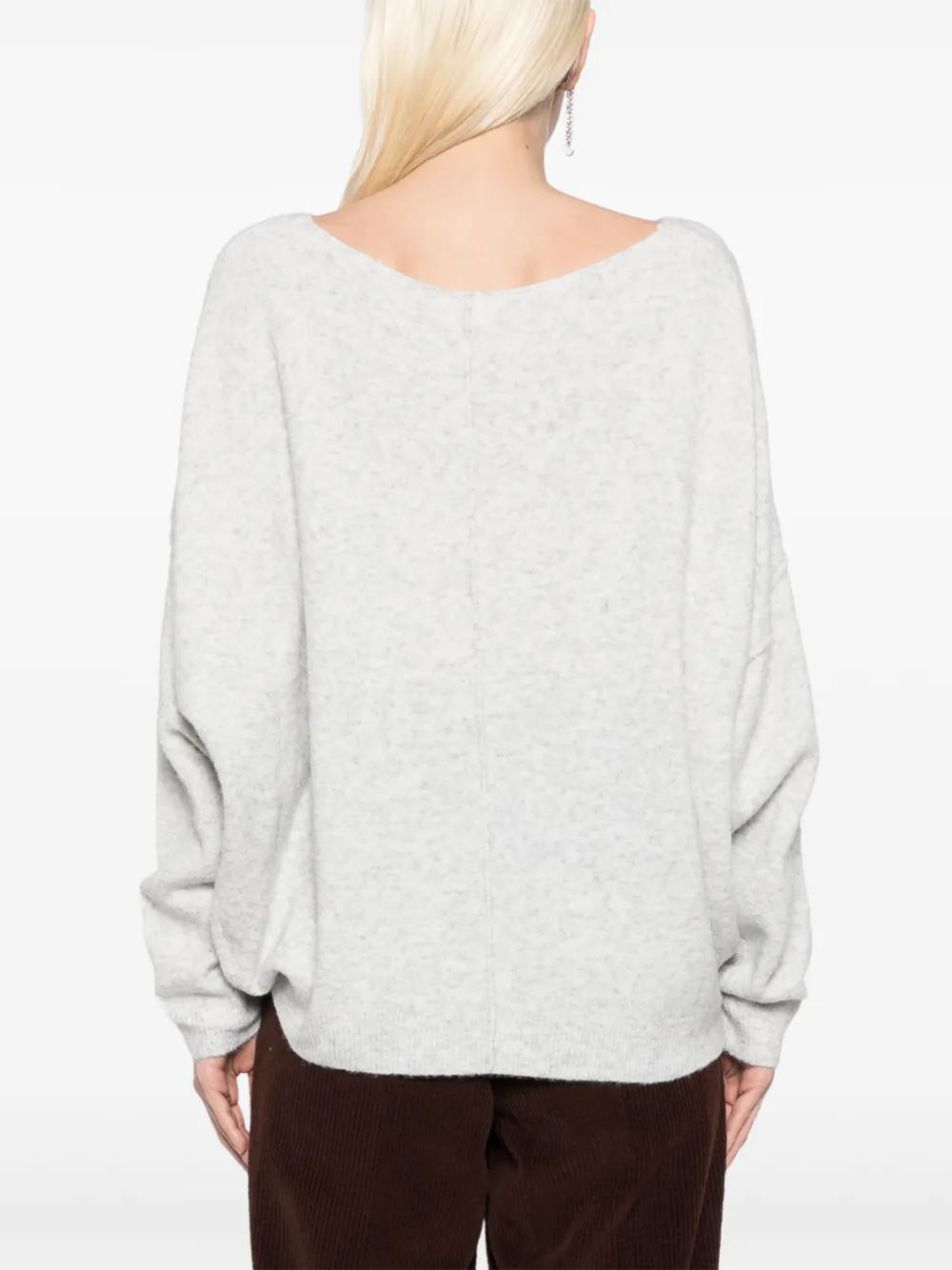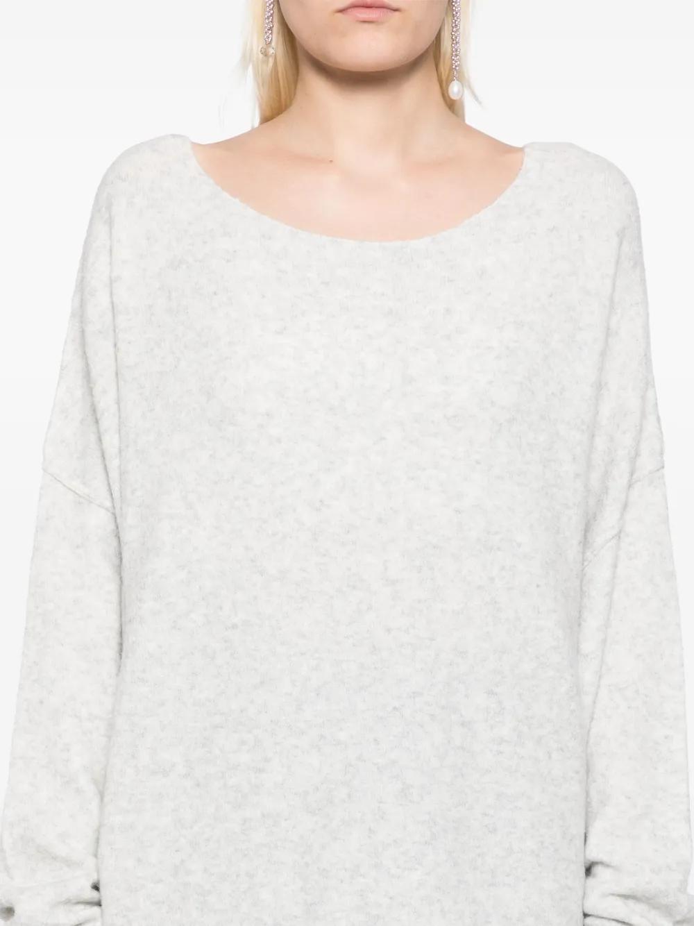 heather grey knitted construction scoop neck long sleeves ribbed cuffs and hem