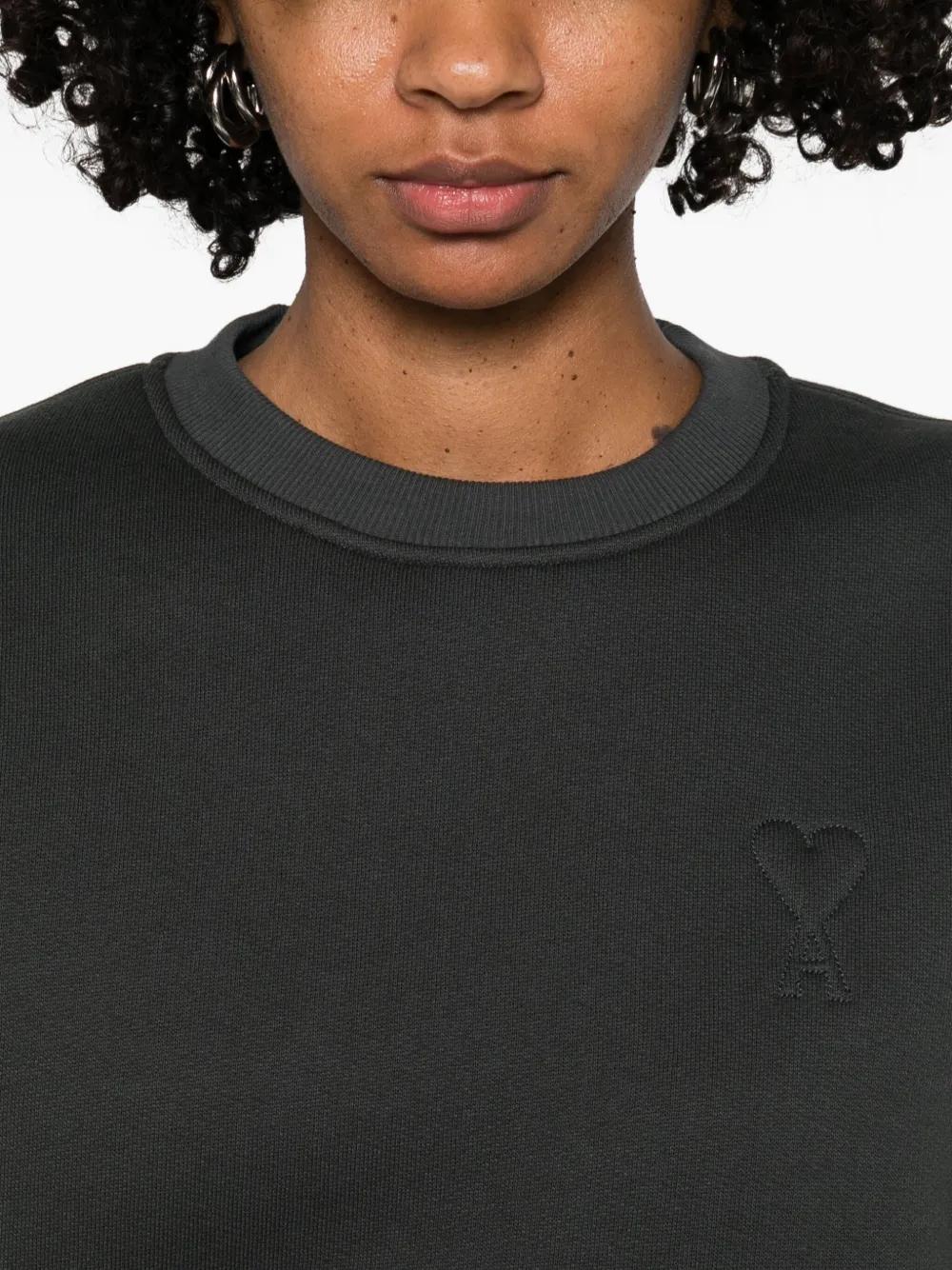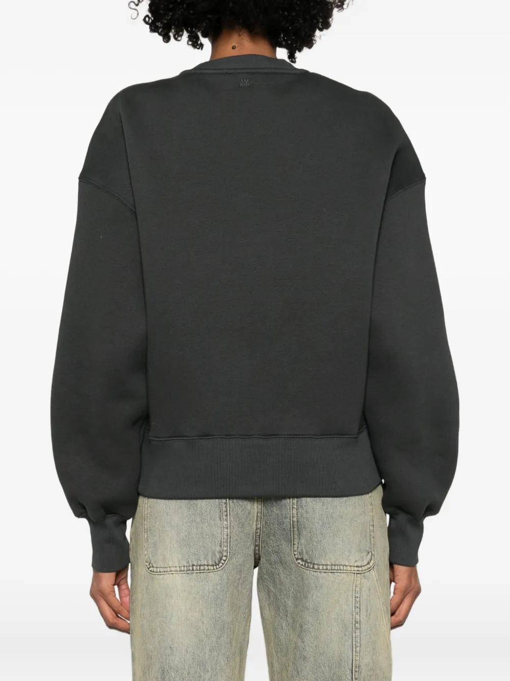 white embroidered logo to the front crew neck long sleeves ribbed trim