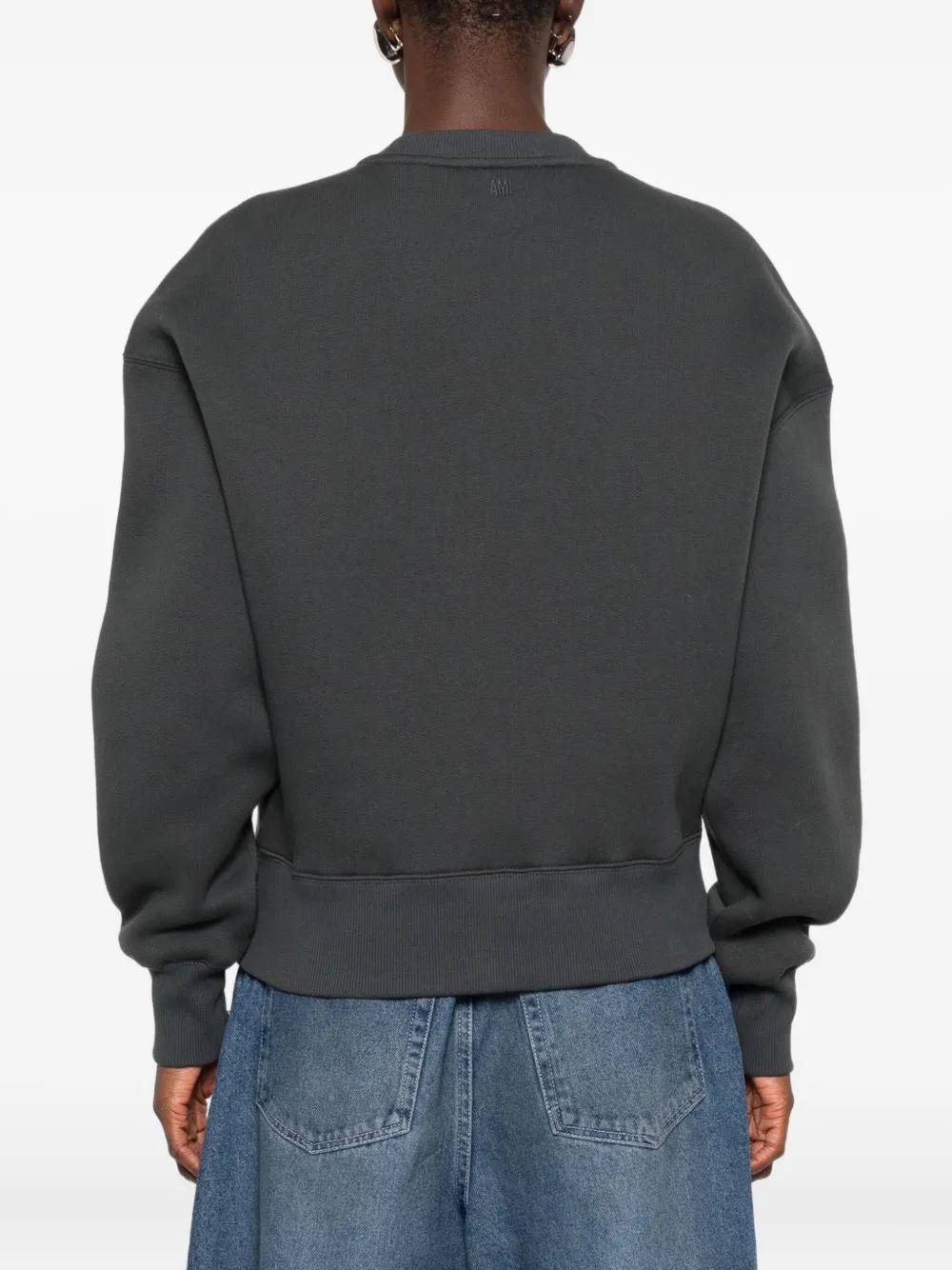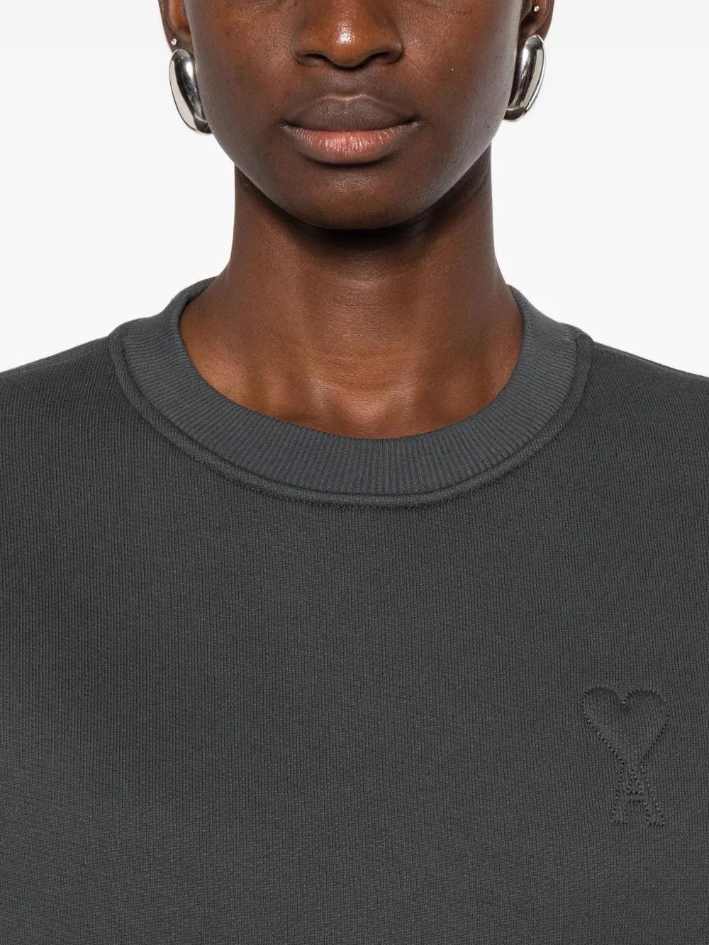 anthracite grey embossed detail ribbed hem ribbed cuffs round neck long sleeves