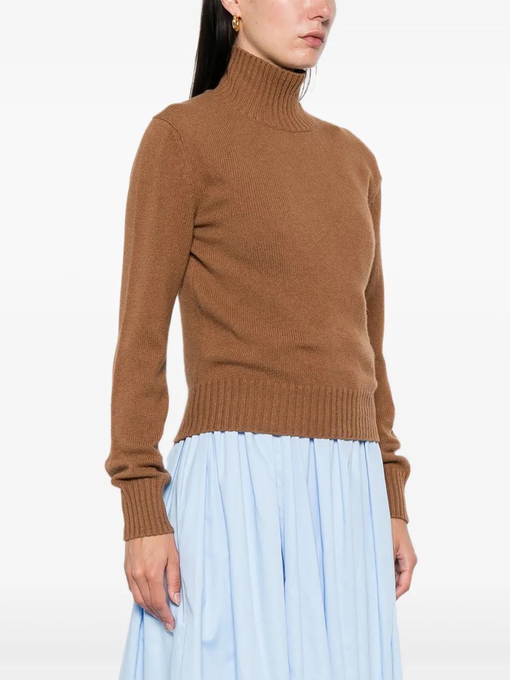 brown turtleneck ribbed hem long sleeves ribbed cuffs