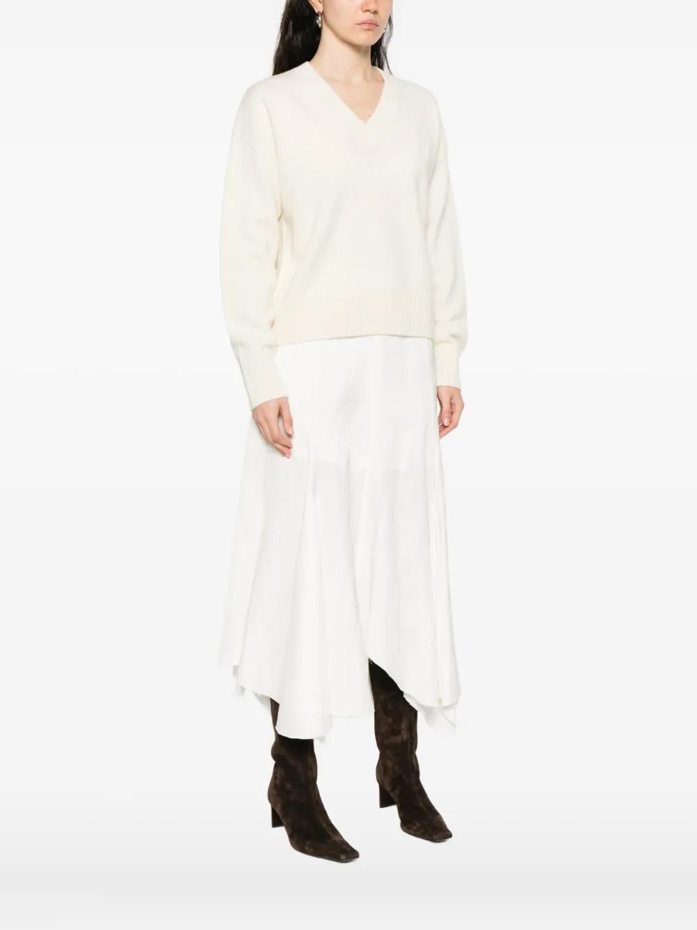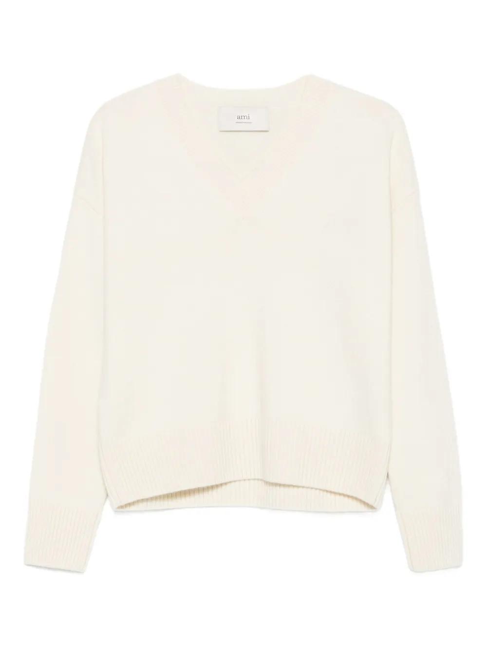 white V-neck long sleeves ribbed cuffs ribbed hem