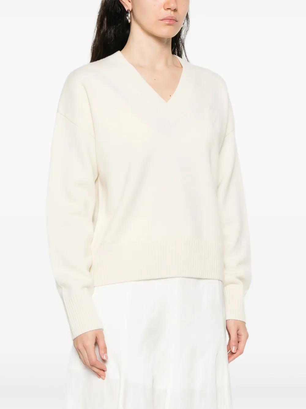 chalk white ribbed knit embroidered logo at the chest crew neck drop shoulder long sleeves ribbed cuffs and hem straight hem