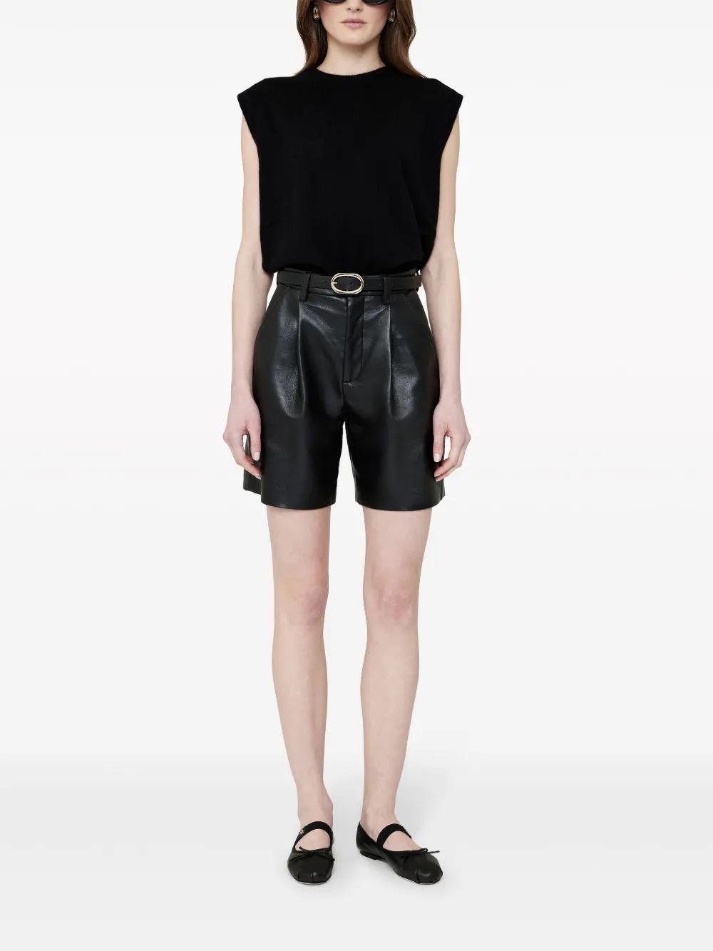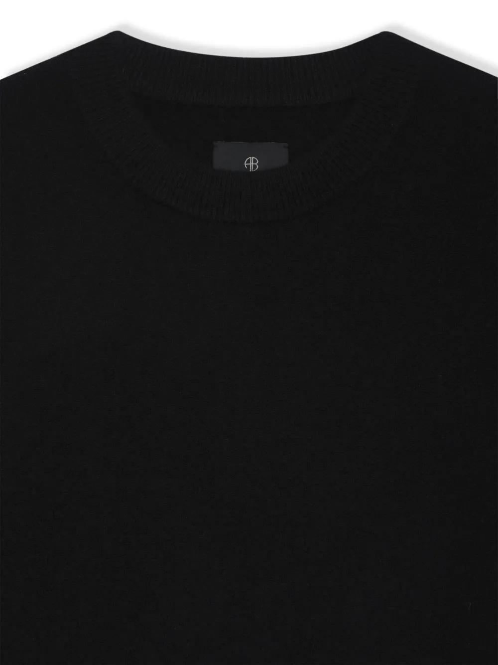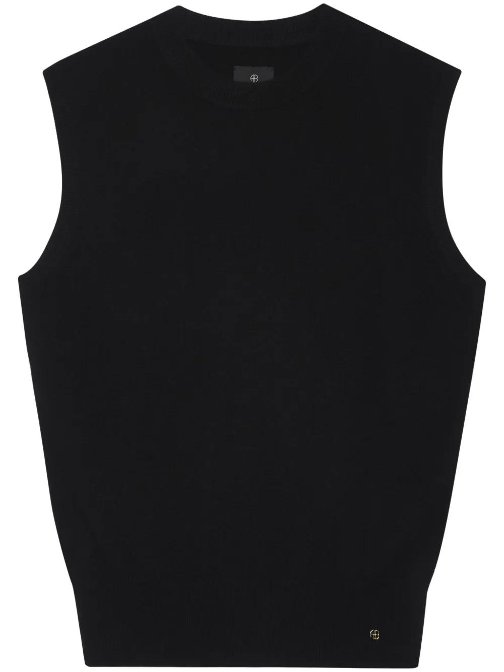 black cashmere fine knit ribbed-knit edge silver-tone logo plaque crew neck sleeveless straight hem