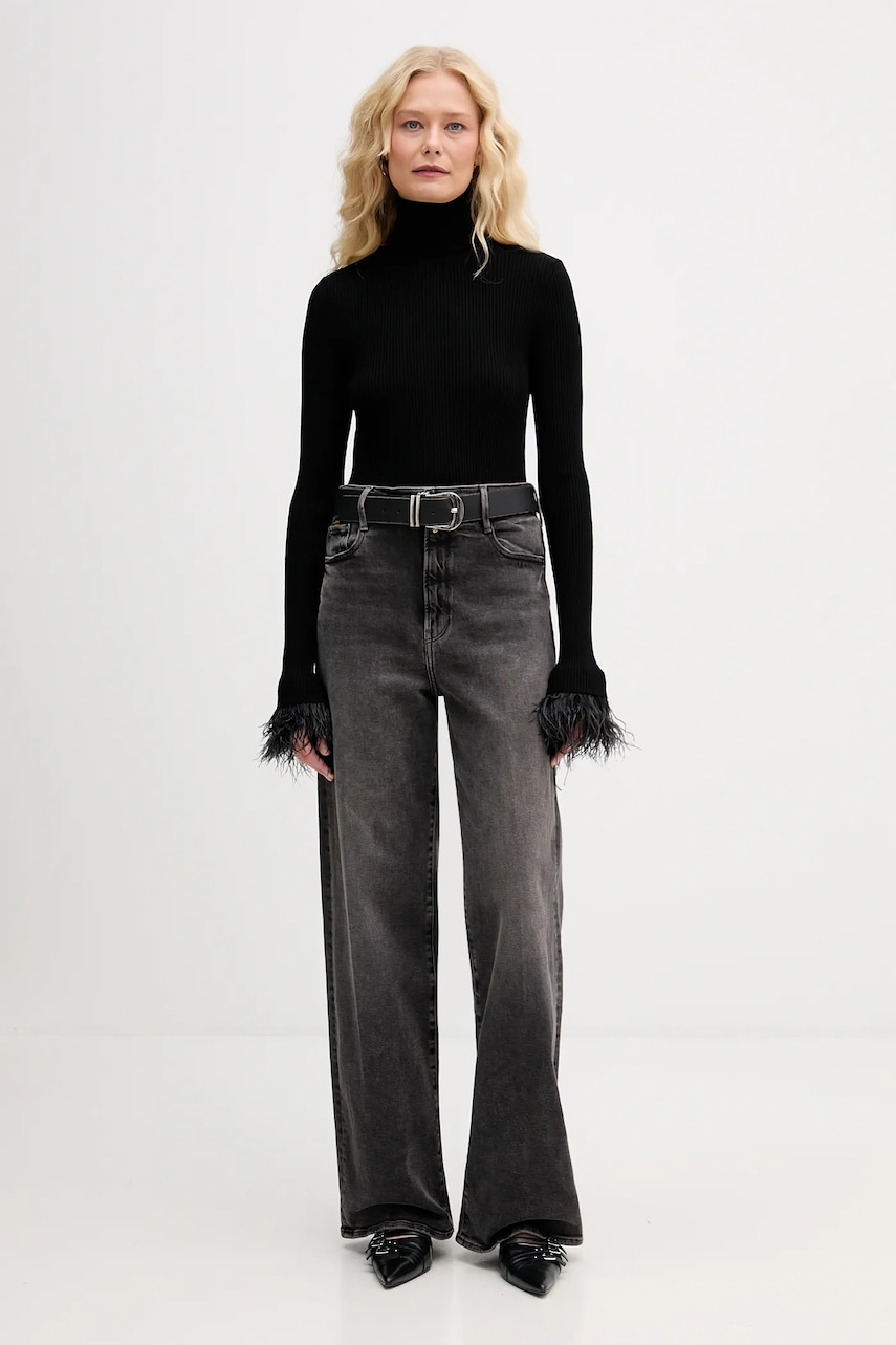 Aniye By sweter damski kolor czarny lekki z golfem 181051