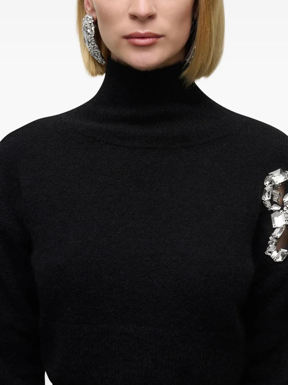 black crystal embellishment turtleneck long sleeves cropped style flower detail