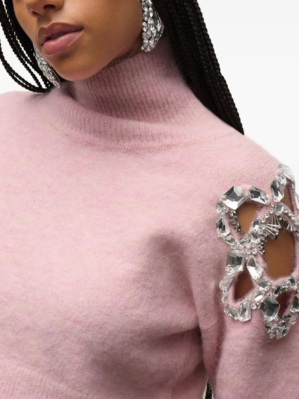 AREA crystal-cluster flower turtleneck sweater - Pink