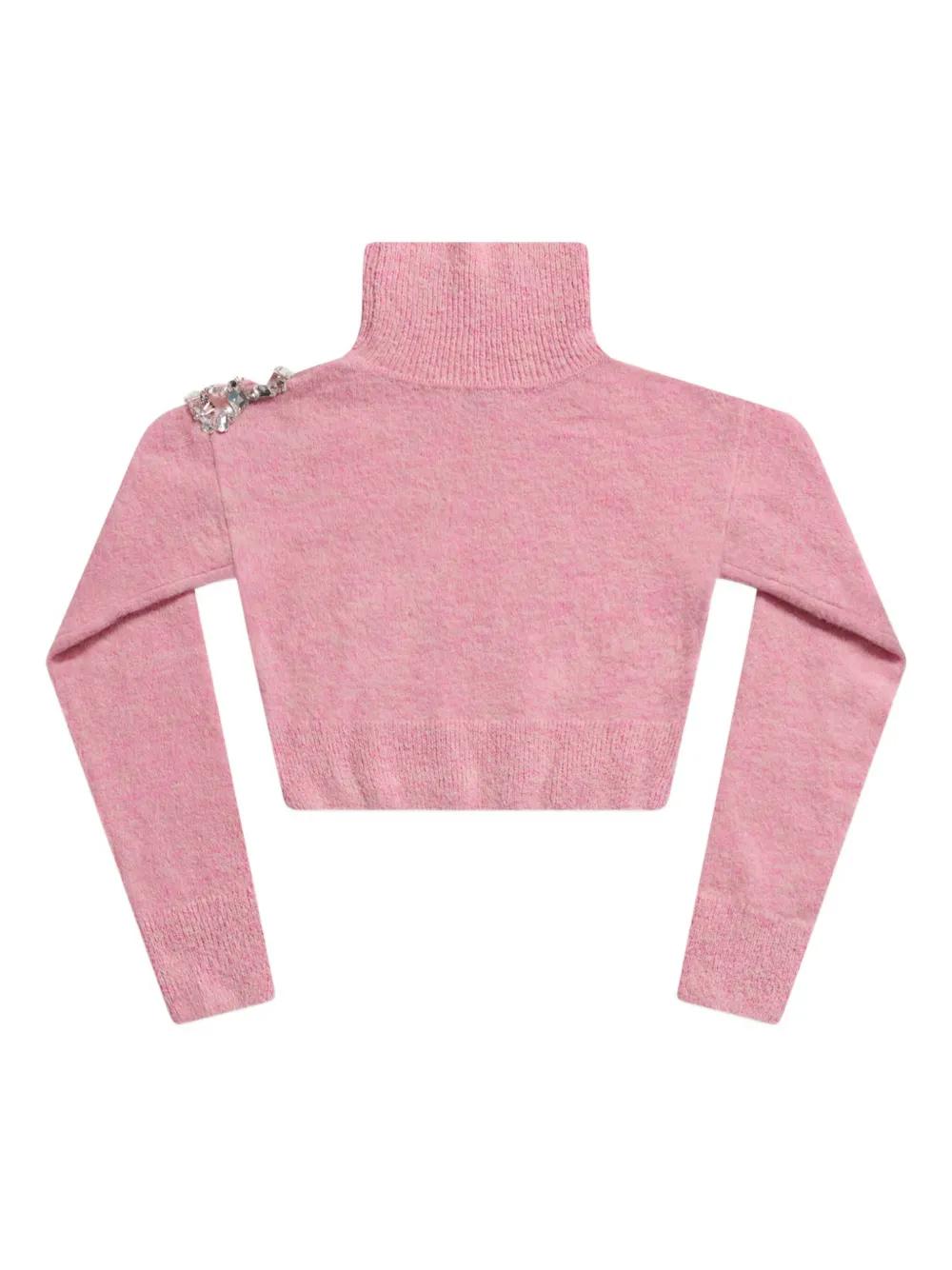 baby pink crystal embellishment turtleneck cropped long sleeves flower detail