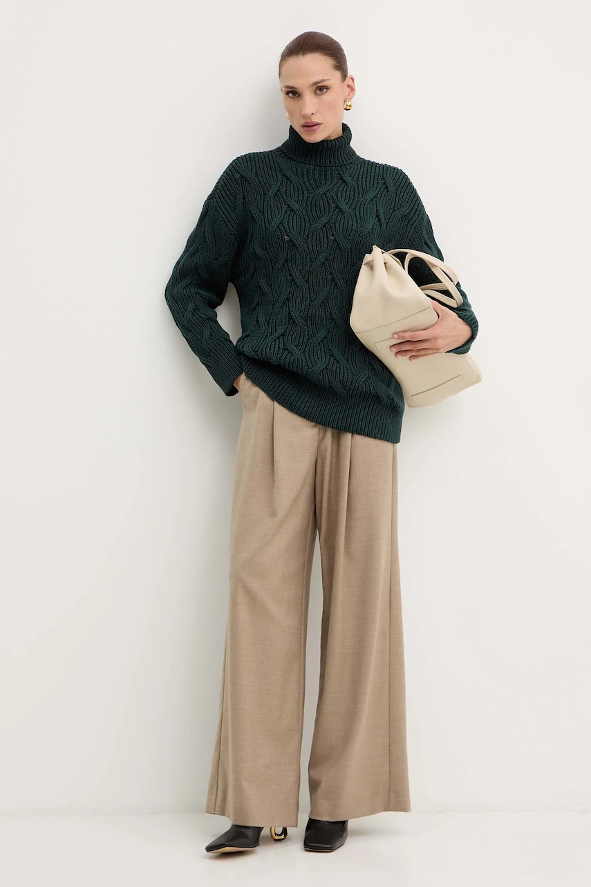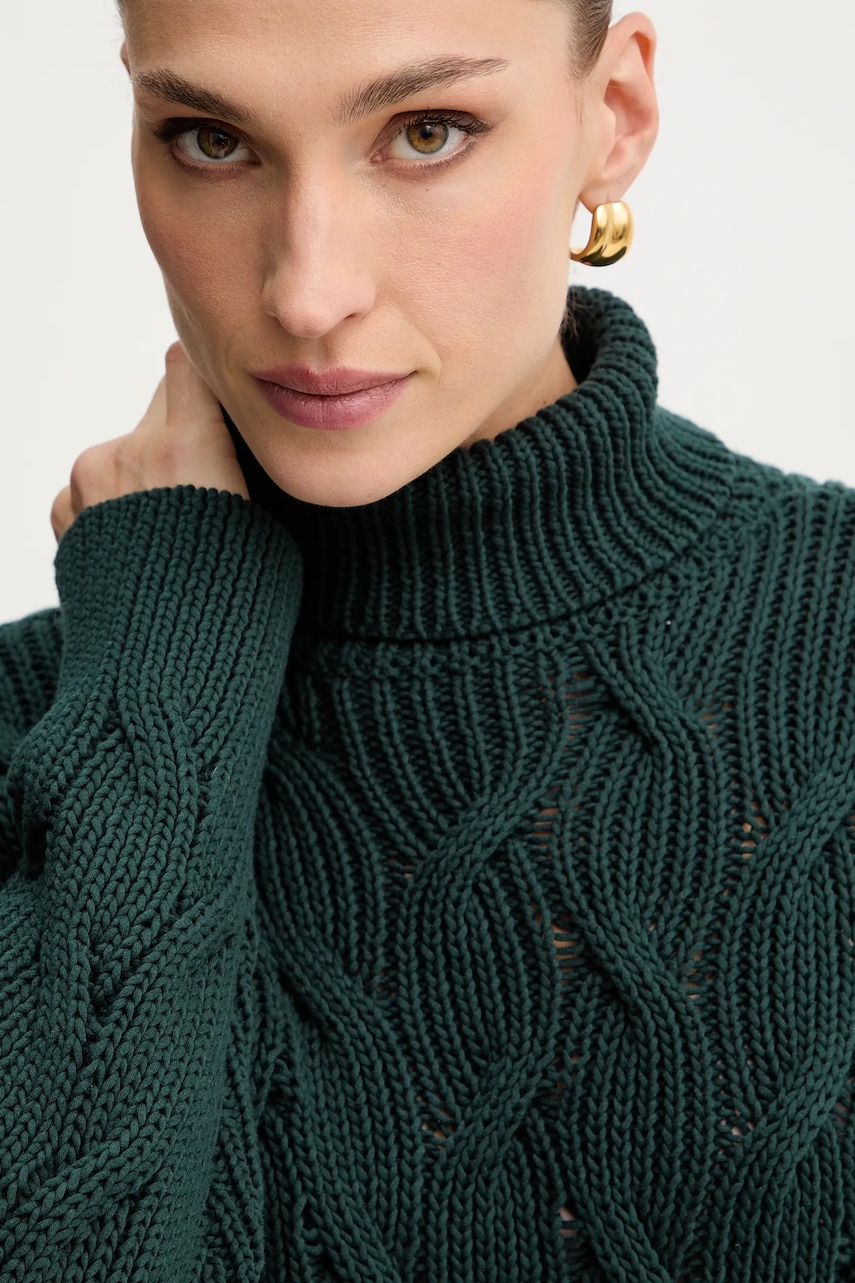 Armani Exchange sweter damski kolor zielony lekki z golfem XW000780 AF16638