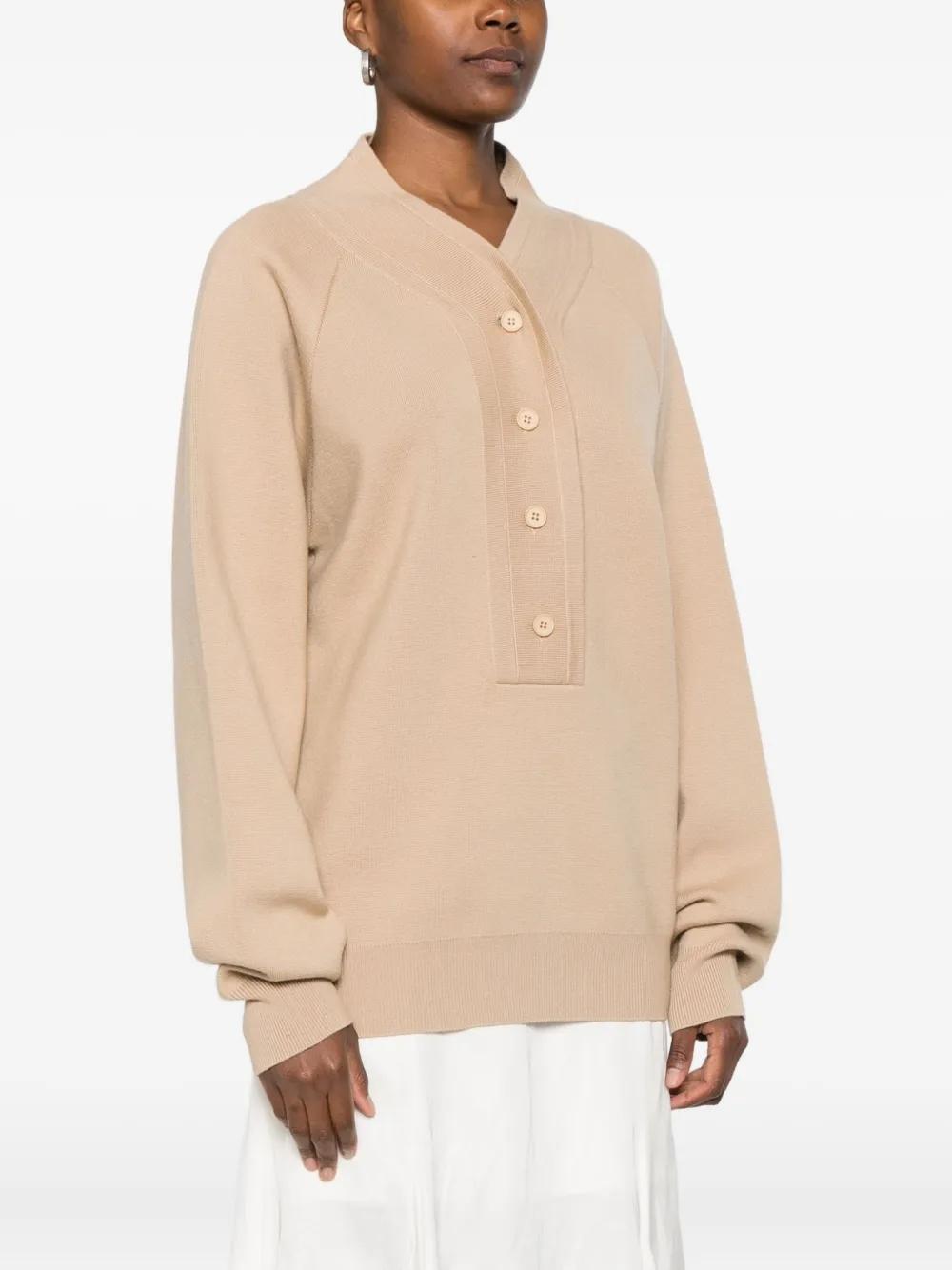 - Model wykonany częściowo z wełny z recyklingu. Dzięki temu zużyto mniej wody, energii i wygenerowano mniej odpadów. - Luźny krój zapewniający pełną swobodę ruchów. - Model z golfem. - Rękaw raglanowy, dzięki swojej konstrukcji, zapewnia większą swobodę ruchu. - Dzianina średniej grubości. - Efektowny splot. - Długość rękawa(mierzona od dekoltu): 80 cm. - Długość: 63 cm. - Szerokość pod pachami: 58 cm. - Wymiary podane dla rozmiaru: S.
