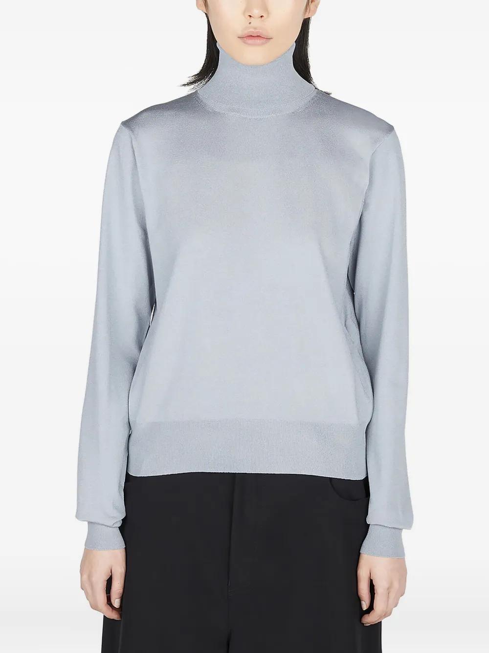 light grey high neck long sleeves ribbed cuffs ribbed hem