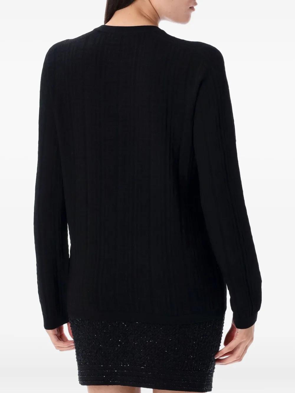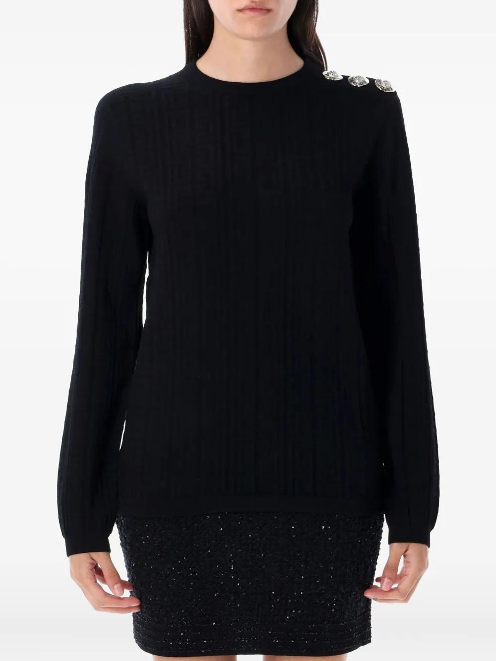 black monogram pattern three-buttons shoulder detail long sleeves round neck