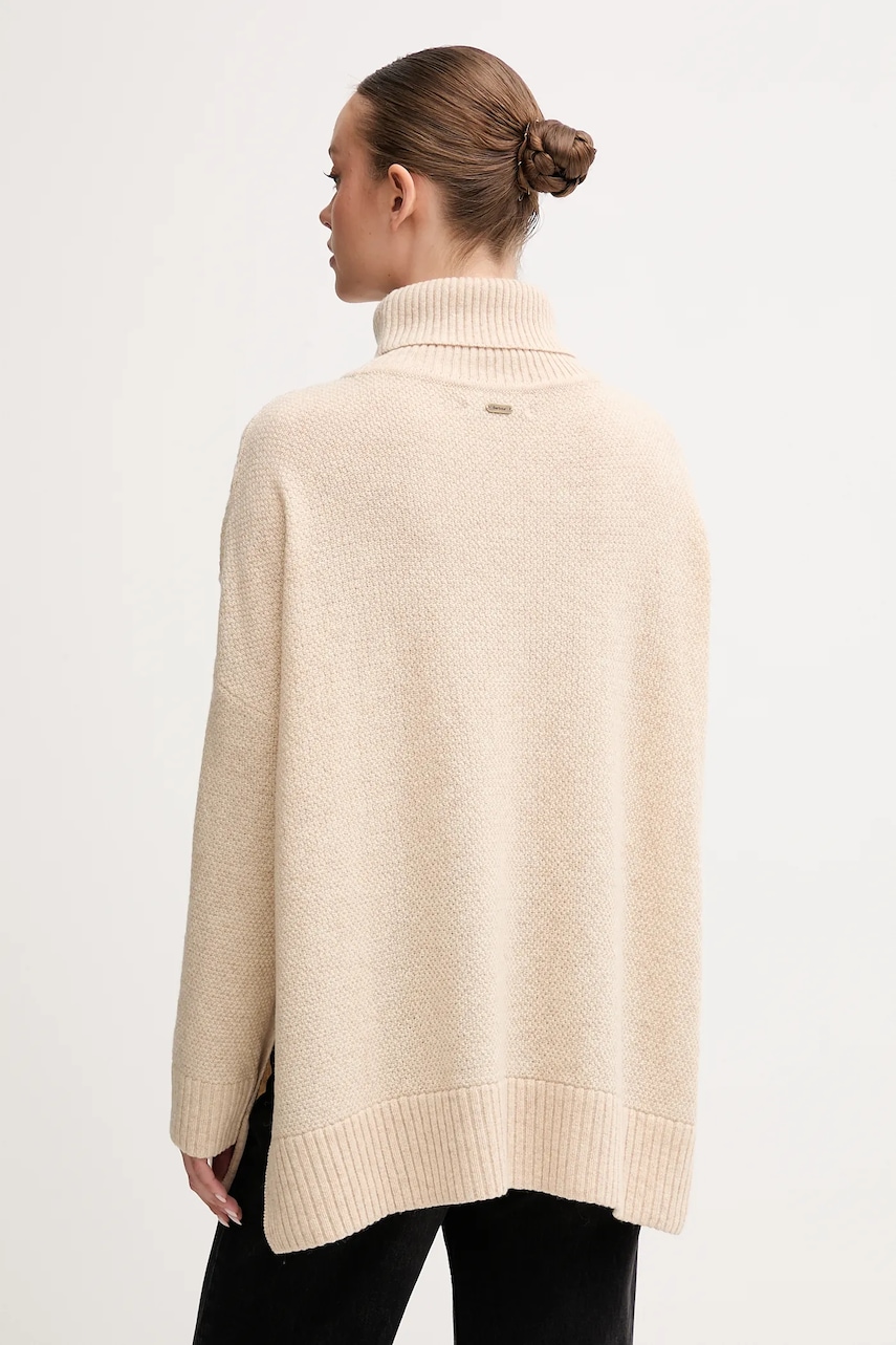 Barbour sweter z dodatkiem wełny damski kolor beżowy z golfem LKN1261