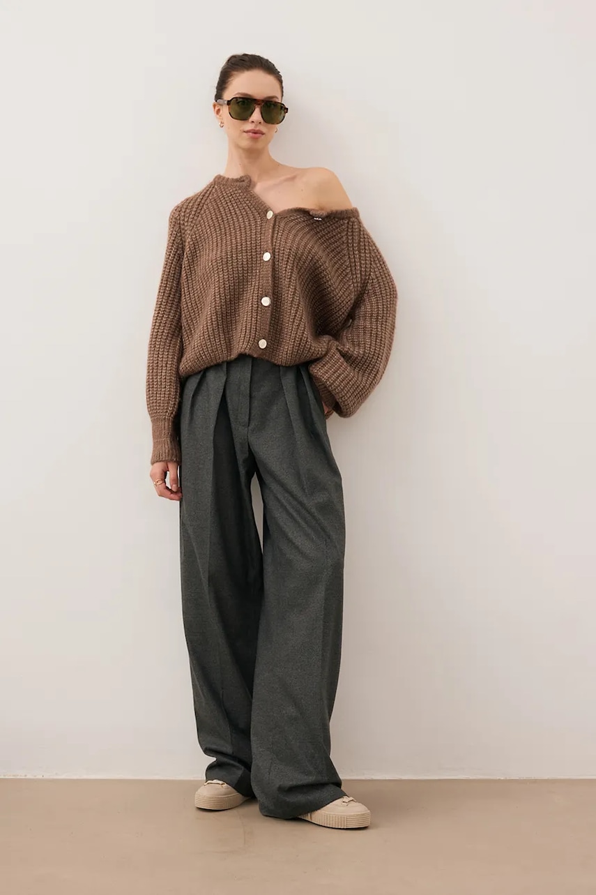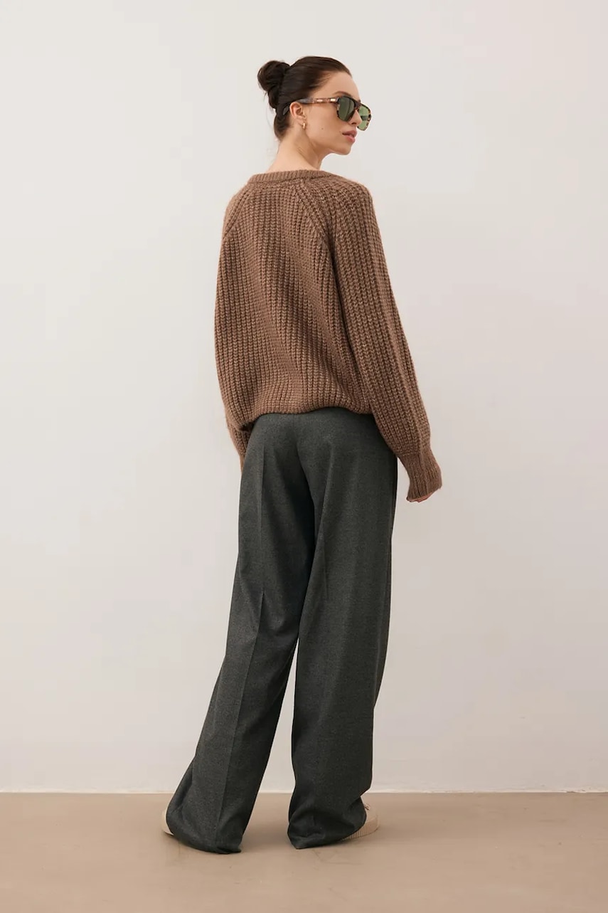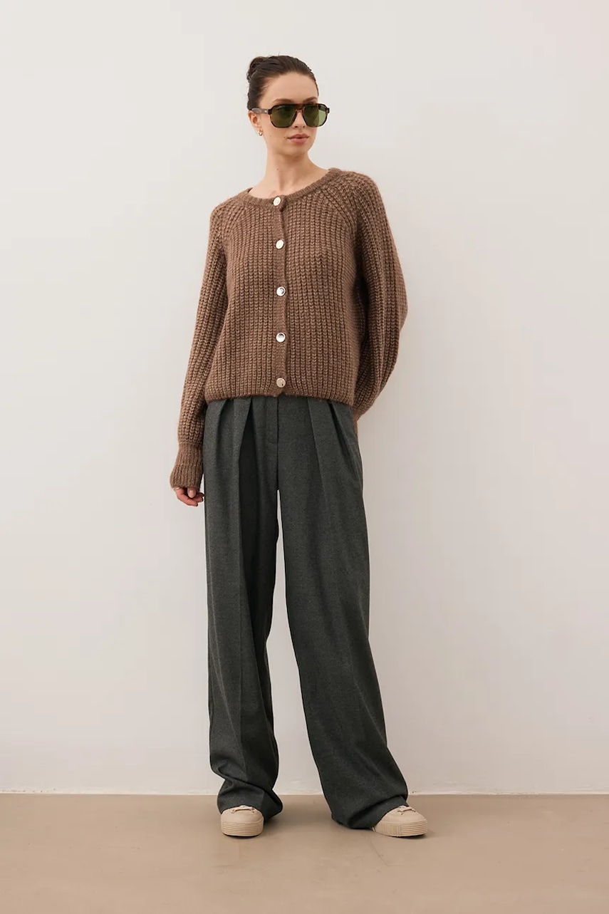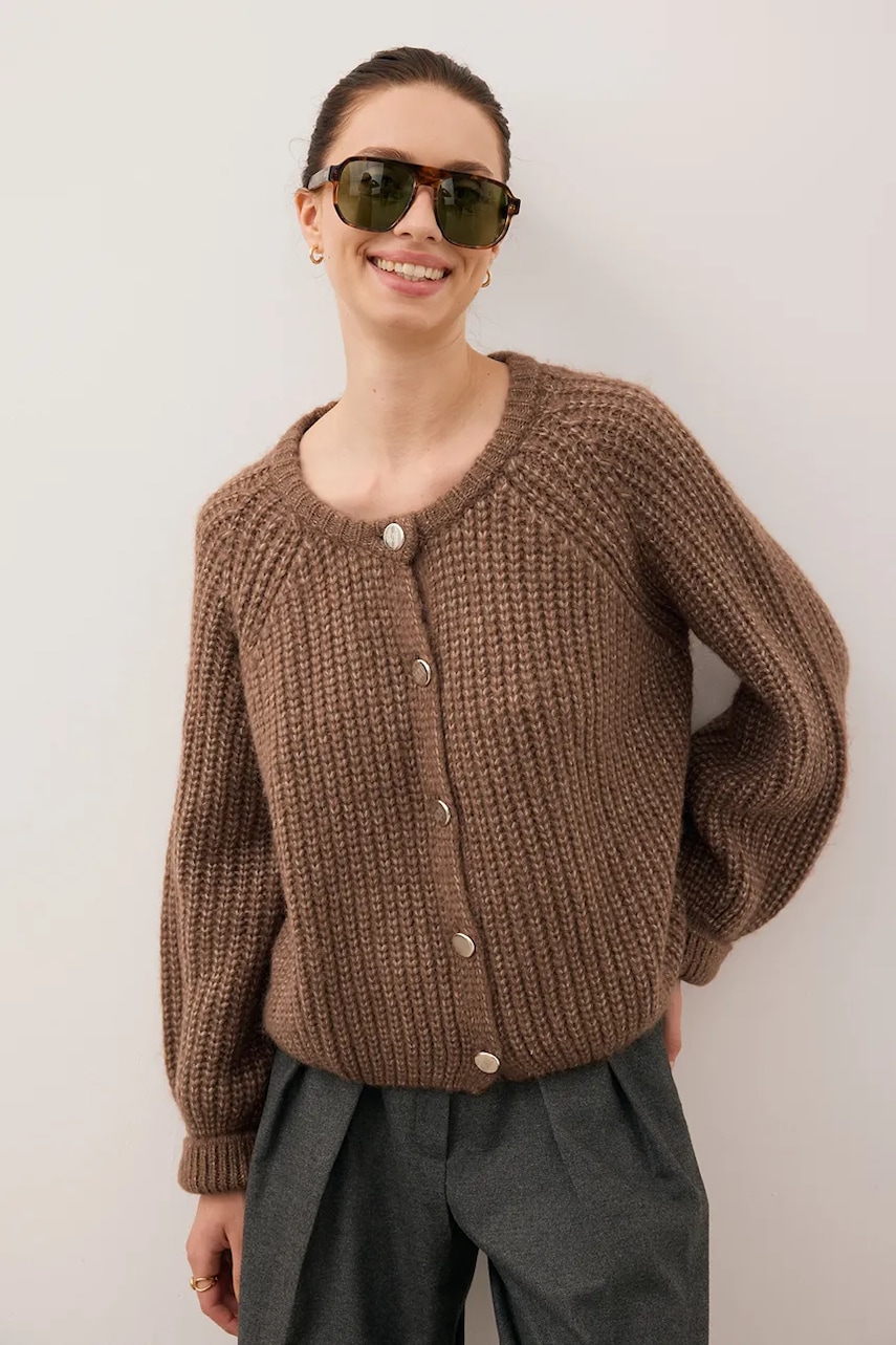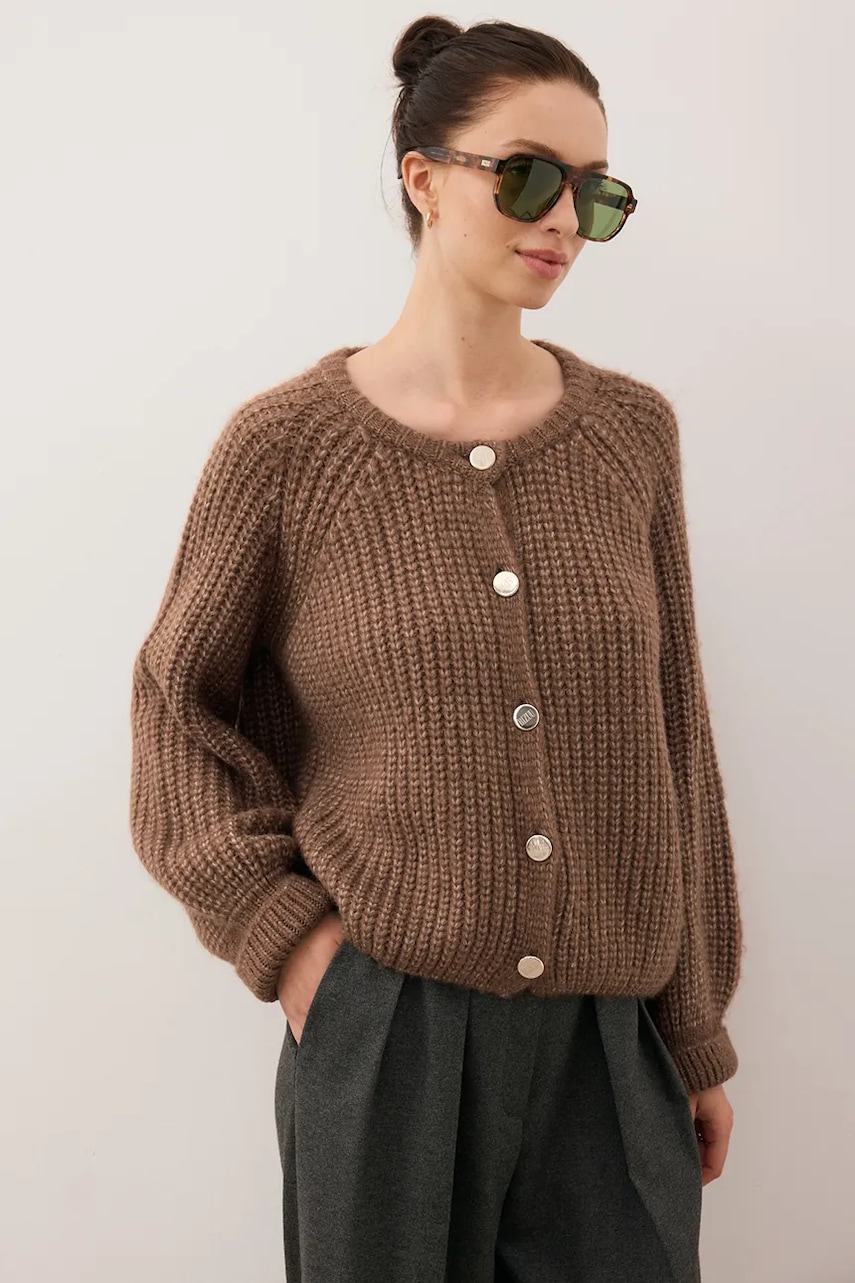 Bizuu kardigan z domieszką wełny ORNAMY damski kolor brązowy ORNAMY BRĄZOWY
