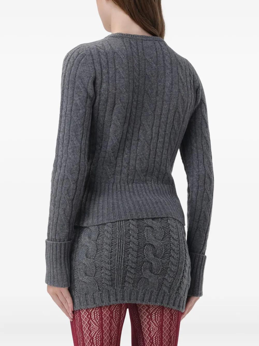 grey cable knit crew neck long sleeves ribbed cuffs ribbed hem