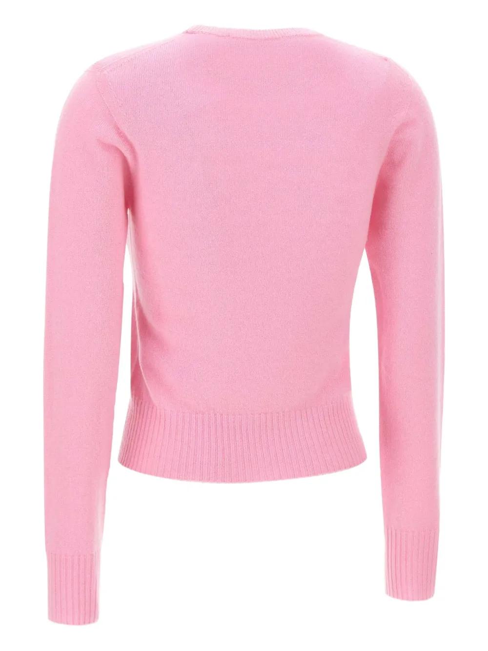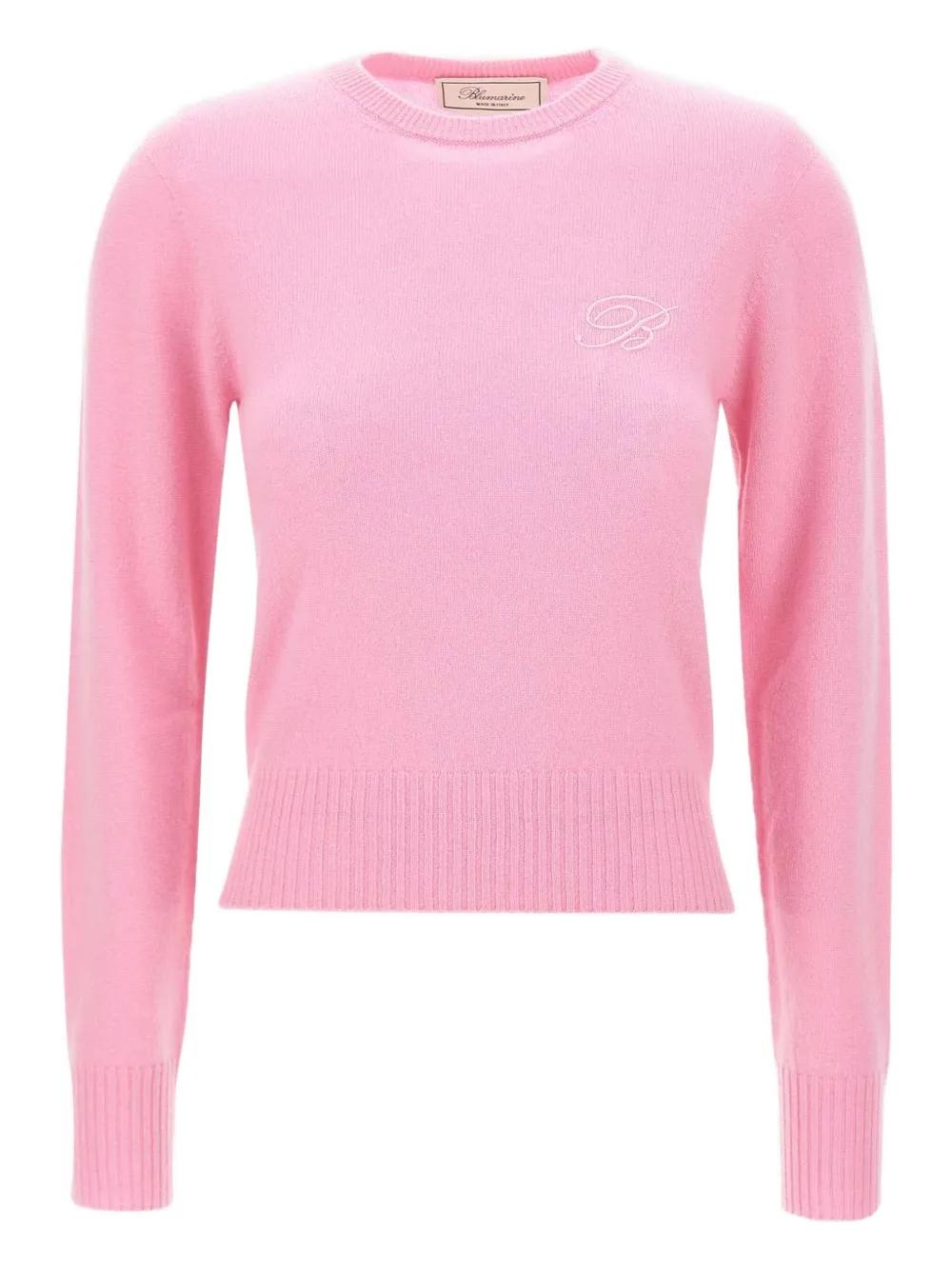 baby pink cashmere embroidered logo round neck long sleeves ribbed edges