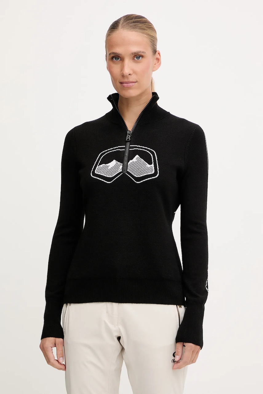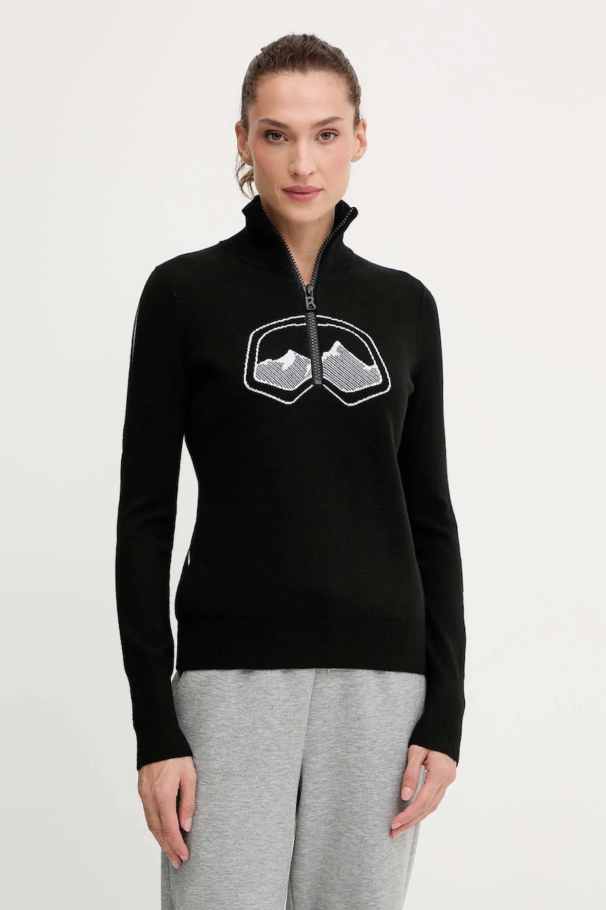 BOGNER Fire+Ice sweter z dodatkiem wełny AZRA damski kolor czarny lekki z półgolfem 84538499