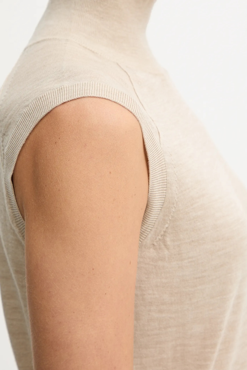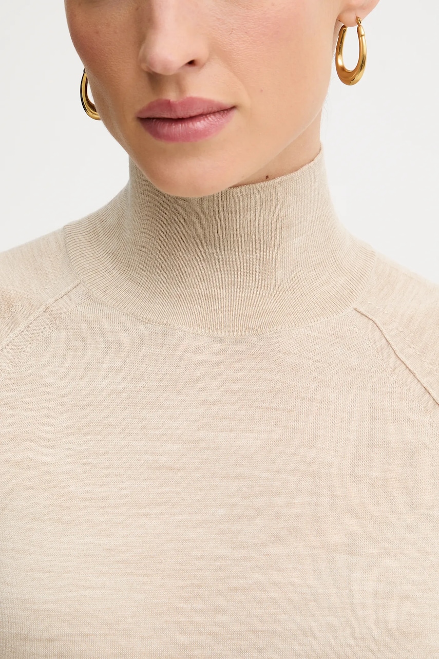 BOSS kamizelka wełniana damski kolor beżowy lekki z półgolfem 50544998