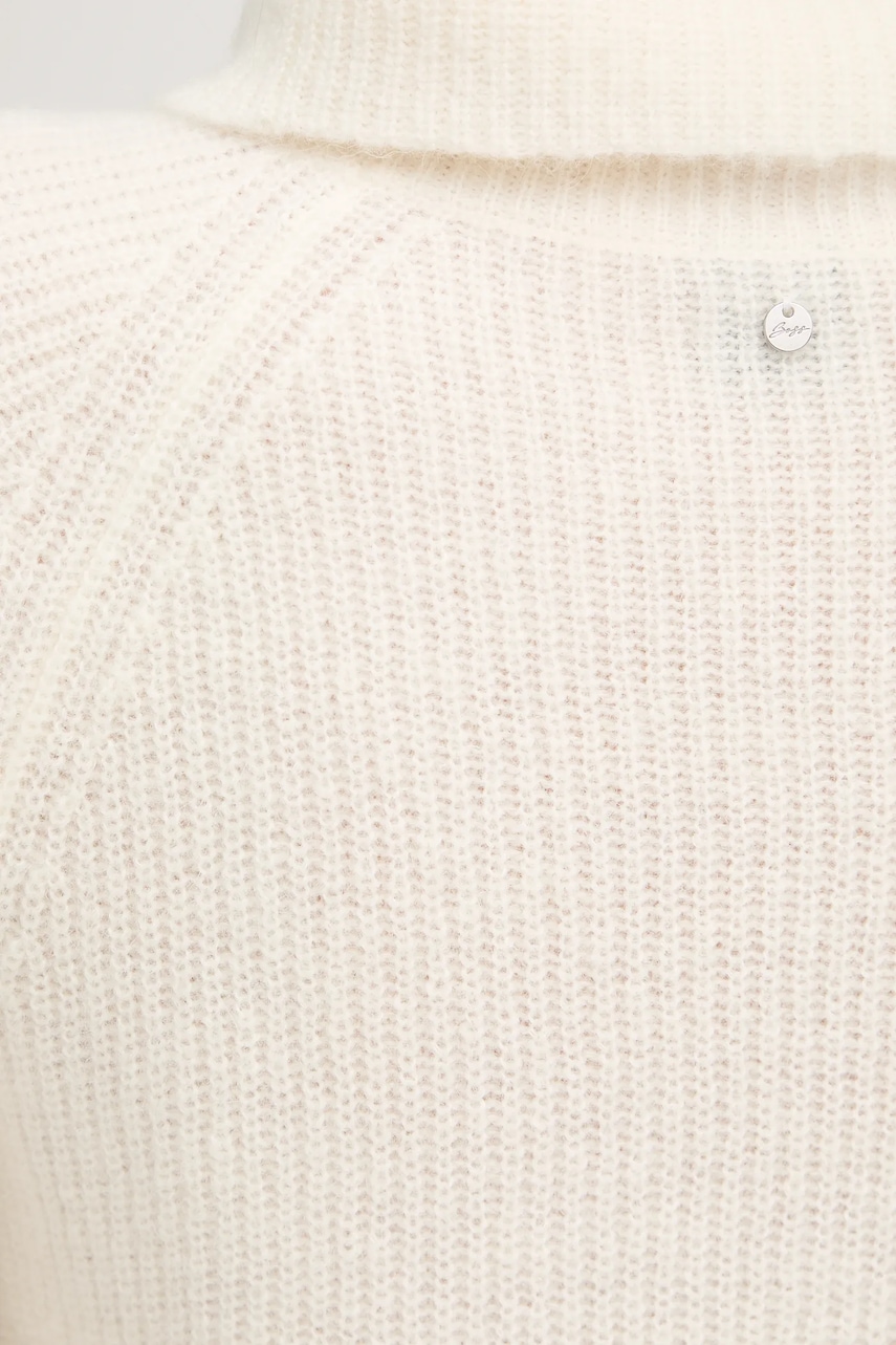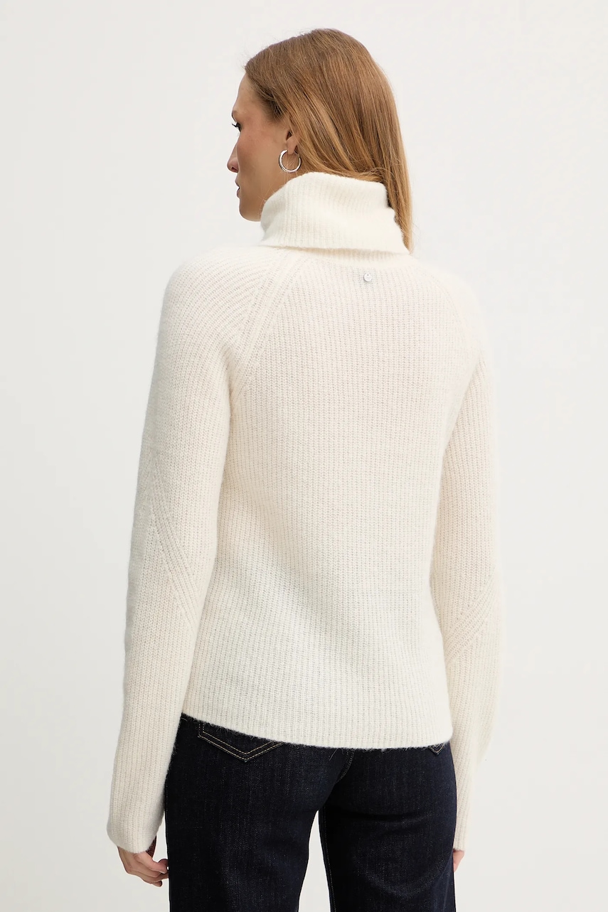 BOSS Orange sweter z dodatkiem wełny damski kolor beżowy lekki z golfem 50548937