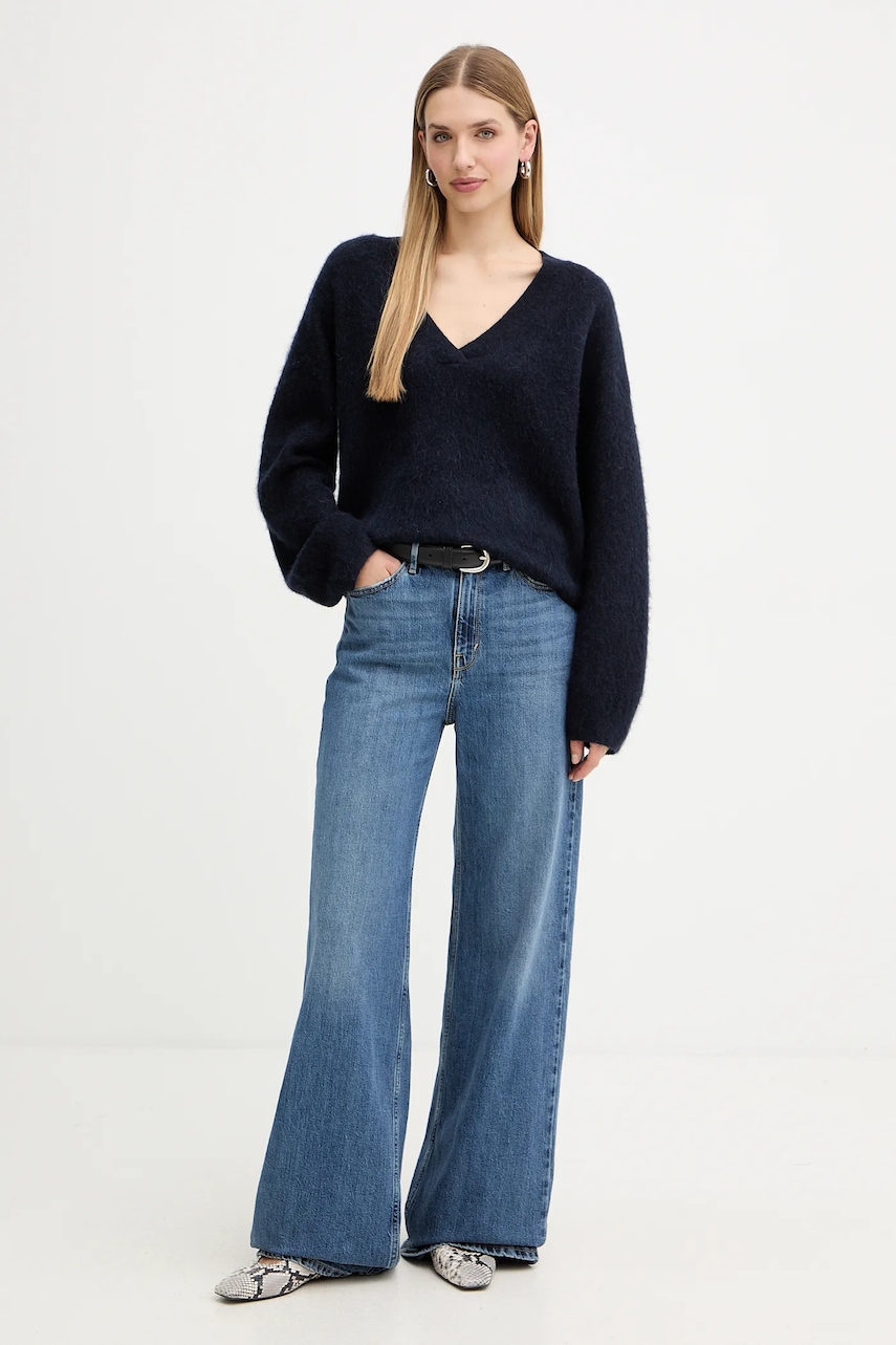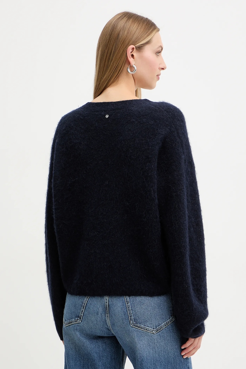 BOSS Orange sweter z dodatkiem wełny damski kolor granatowy 50549185