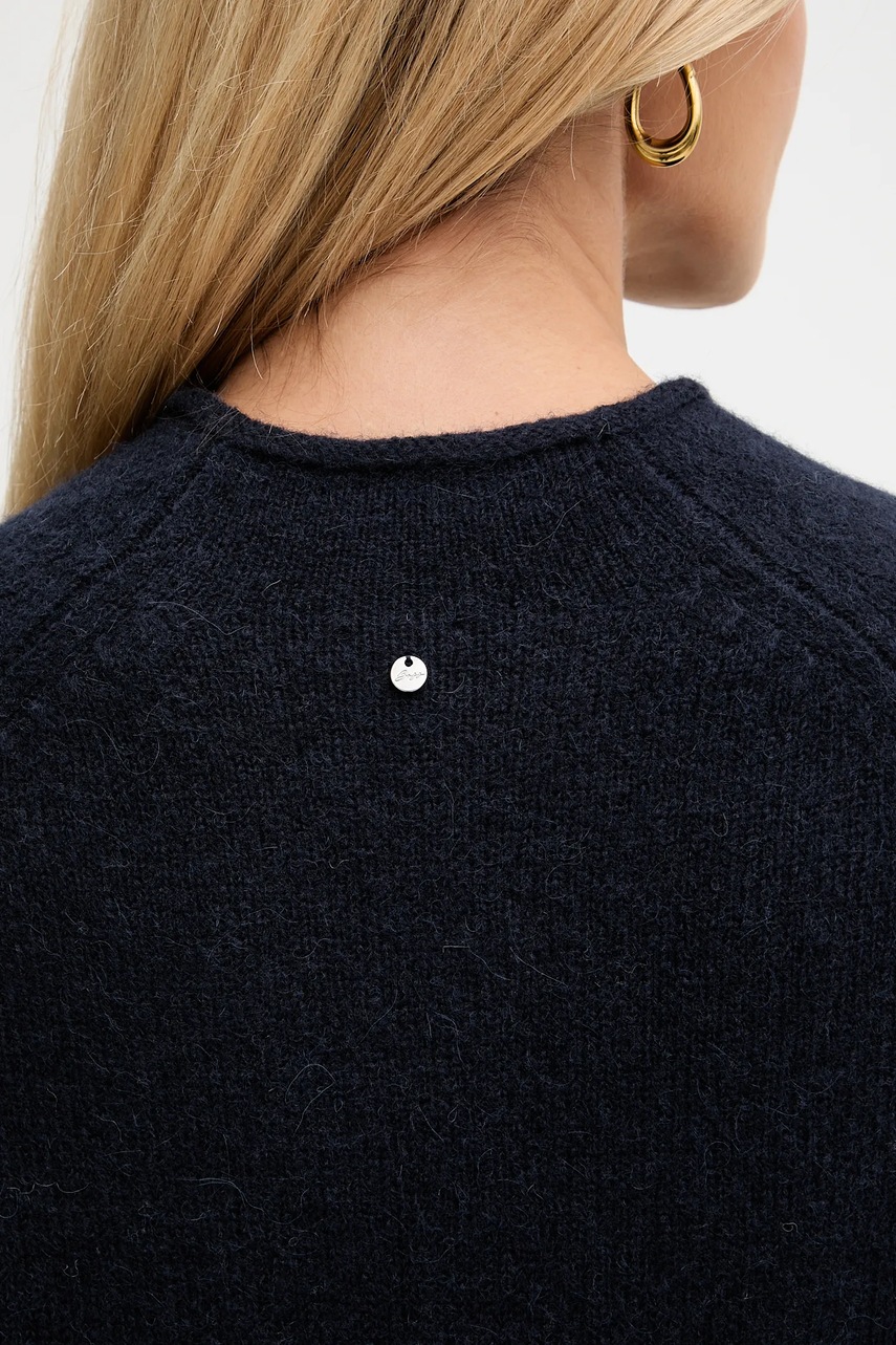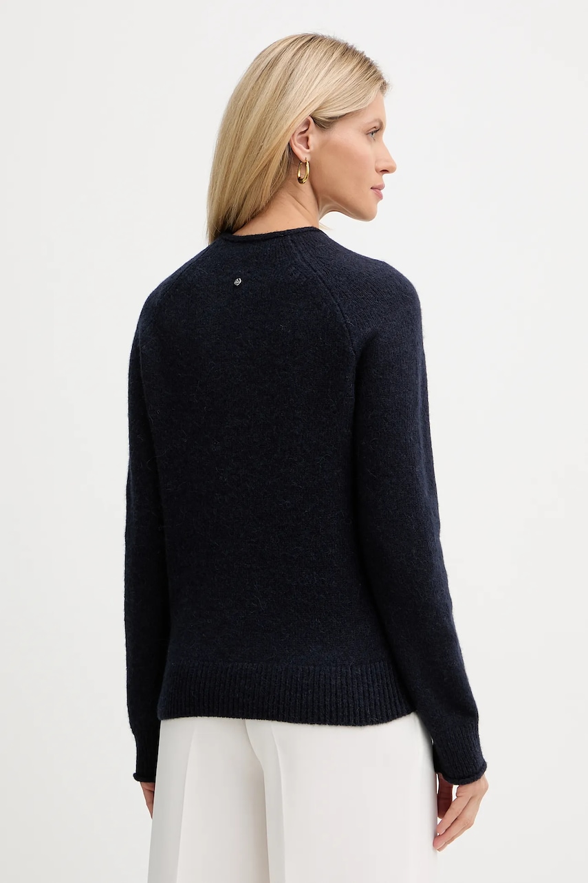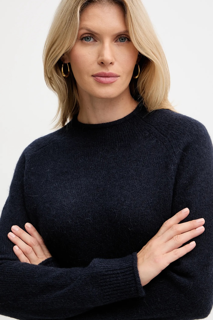 BOSS Orange sweter z dodatkiem wełny damski kolor granatowy lekki z półgolfem 50548930