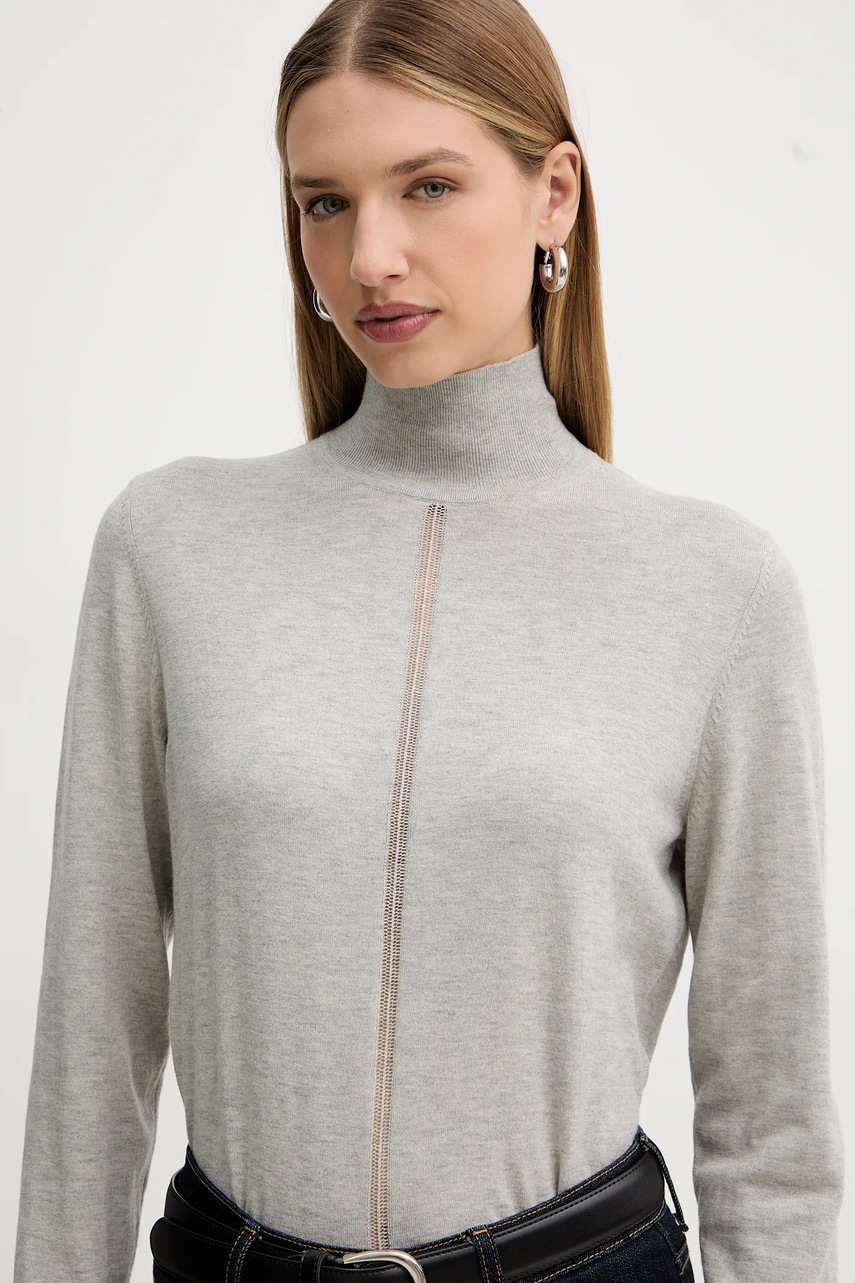 BOSS Orange sweter z dodatkiem wełny damski kolor szary lekki z półgolfem 50551356