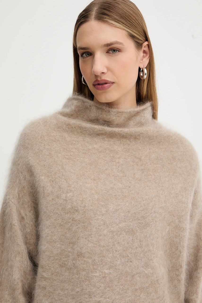BOSS sweter kaszmirowy damski kolor beżowy lekki z półgolfem 50550806