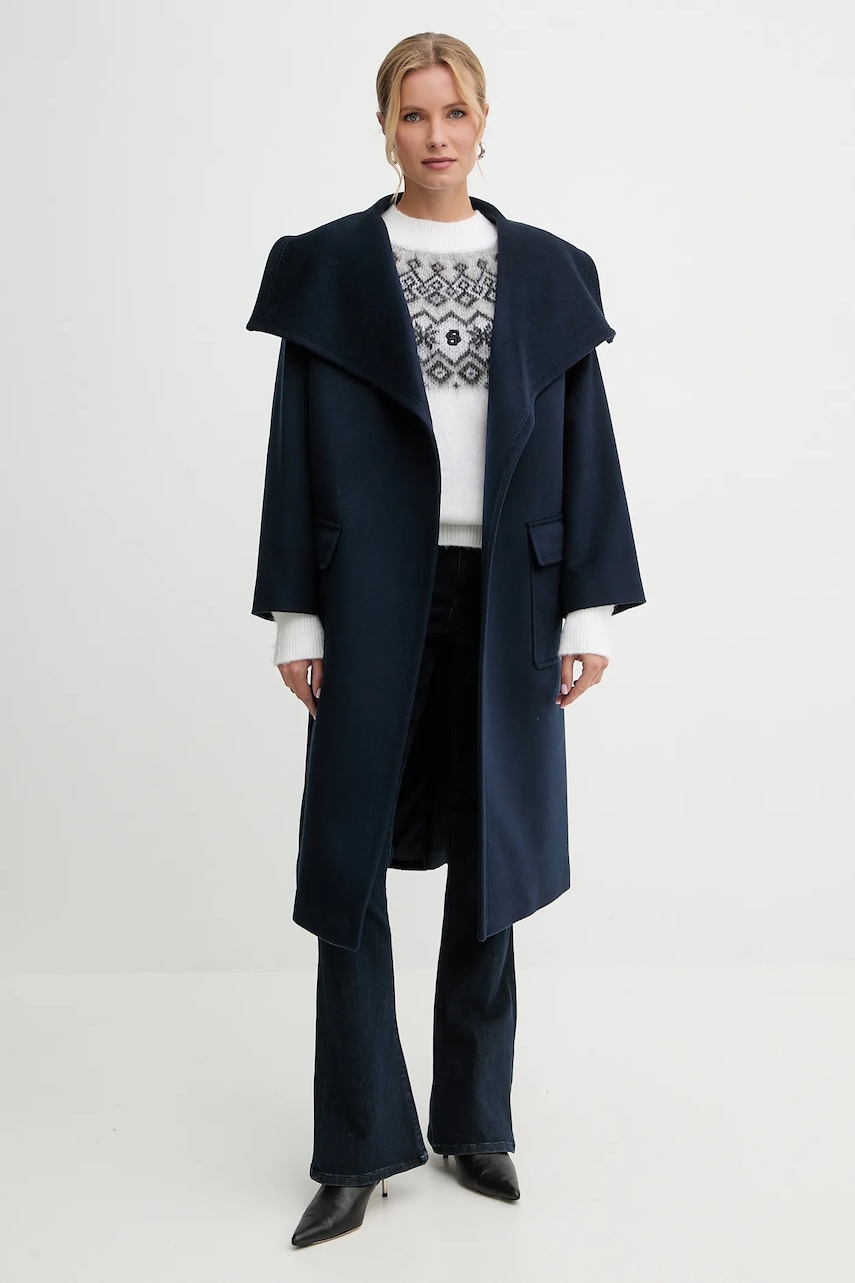 BOSS sweter z dodatkiem wełny damski kolor beżowy z półgolfem 50549369