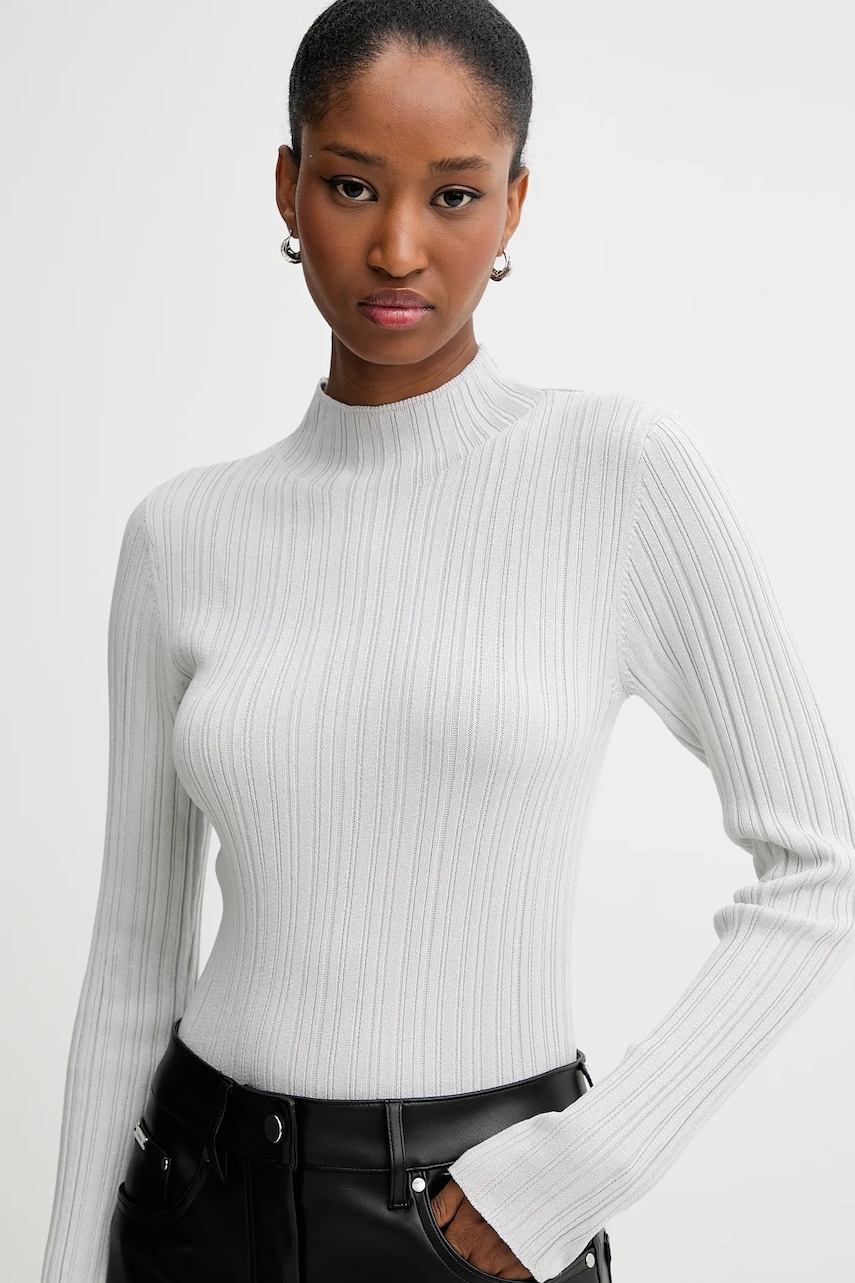 - Prążkowana struktura materiału sprawia, że jest on niezwykle elastyczny i doskonale przylega do ciała. - Model ze stójką. - Cienka, elastyczna dzianina. - Długość rękawa: 62 cm. - Długość: 61 cm. - Szerokość pod pachami: 39 cm. - Wymiary podane dla rozmiaru: S.