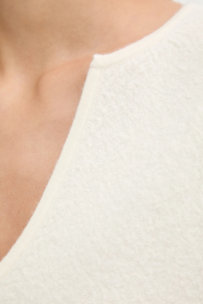 - Ten model został wyprodukowany przy użyciu wełny ze starannie wybranych fabryk, które dbają o środowisko i dobrostan zwierząt. - Luźny krój zapewniający pełną swobodę ruchów. - Krój rękawa z obniżoną linią ramion nie ogranicza mobilności. - Ozdobny, spiczasty dekolt. - Dzianina średniej grubości. - Długość rękawa(mierzona od dekoltu): 74 cm. - Długość: 62 cm. - Szerokość pod pachami: 56 cm. - Wymiary podane dla rozmiaru: S.