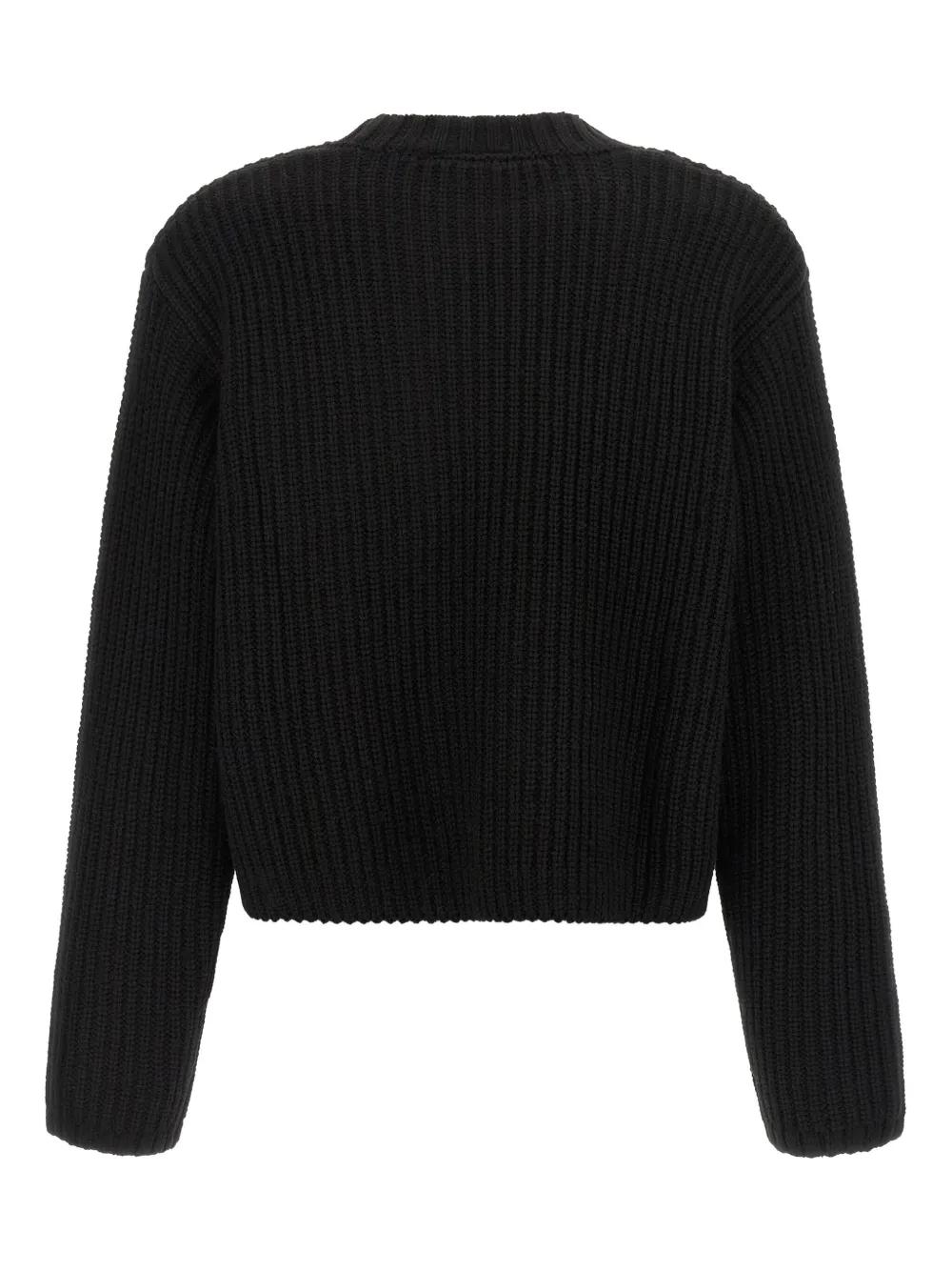 black thick ribbing crew neck logo patch long sleeves