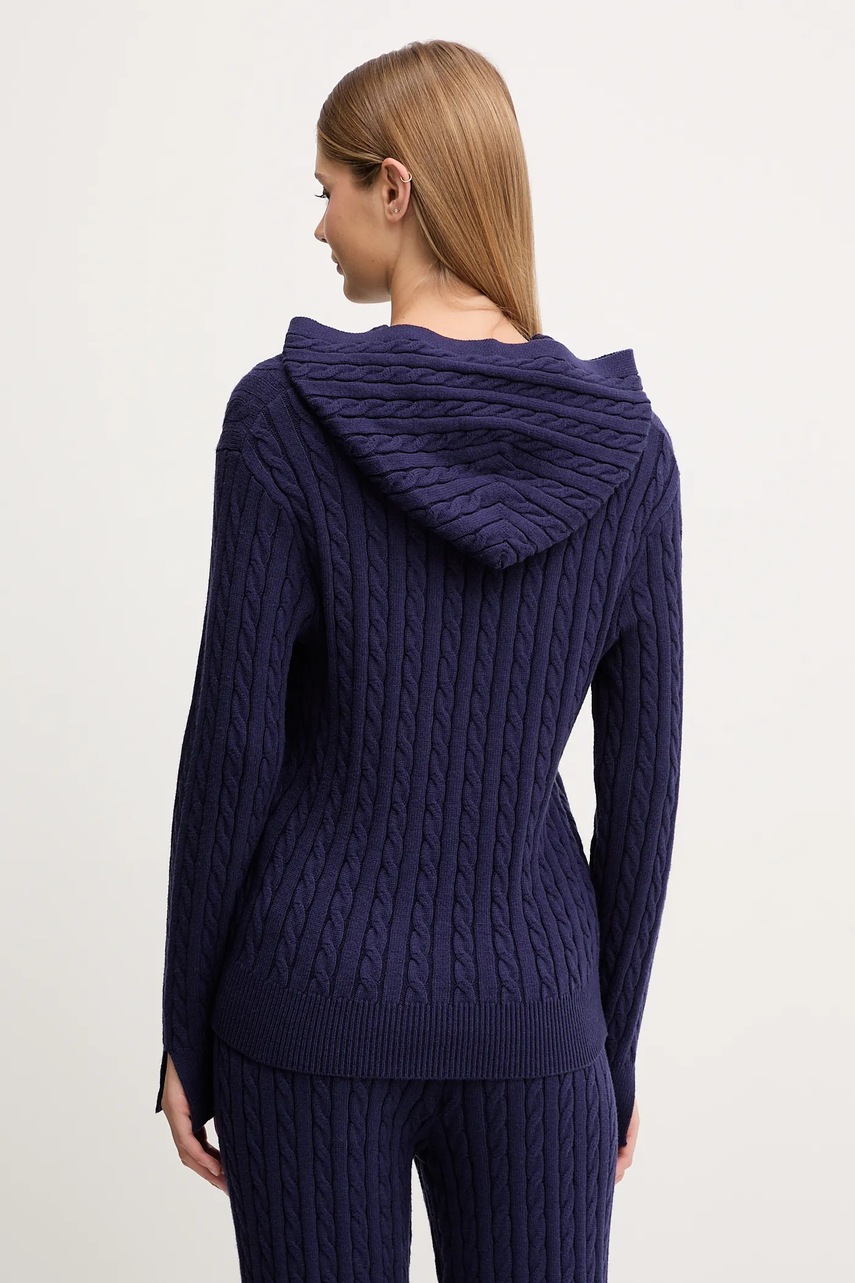 - Materiał zbadany na zawartość szkodliwych substancji: Oeko-Tex® Standard 100. - Prosty, nie blokujący ruchów fason. - Wbudowany kaptur zapewnia dodatkowe ciepło i osłonę, gdy jest to potrzebne. - Krój rękawa z obniżoną linią ramion nie ogranicza mobilności. - Rękawy i dolna krawędź wykończone wygodnym, elastycznym ściągaczem. - Dzianina średniej grubości. - Warkoczowy splot. - Długość rękawa(mierzona od kaptura): 75 cm. - Długość: 66,5 cm. - Szerokość pod pachami: 47 cm. - Wymiary podane dla rozmiaru: S.