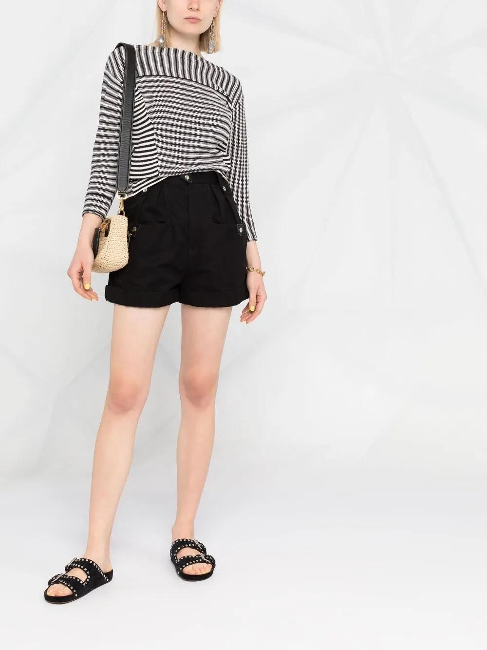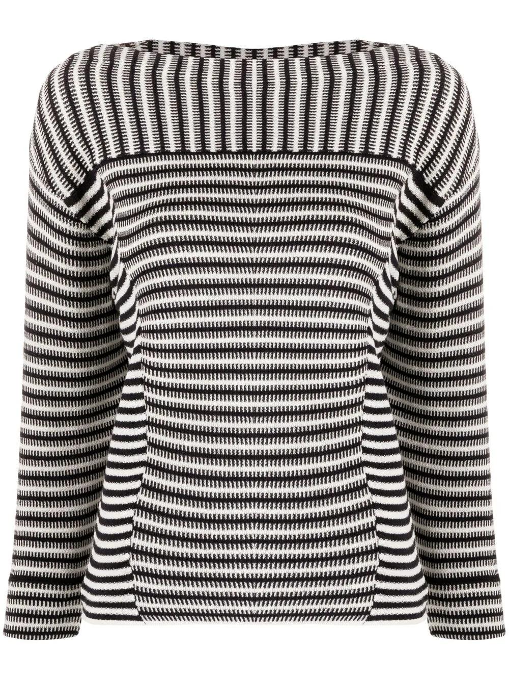 navy blue/white cotton stripe pattern panelled design boat neck three-quarter length sleeves