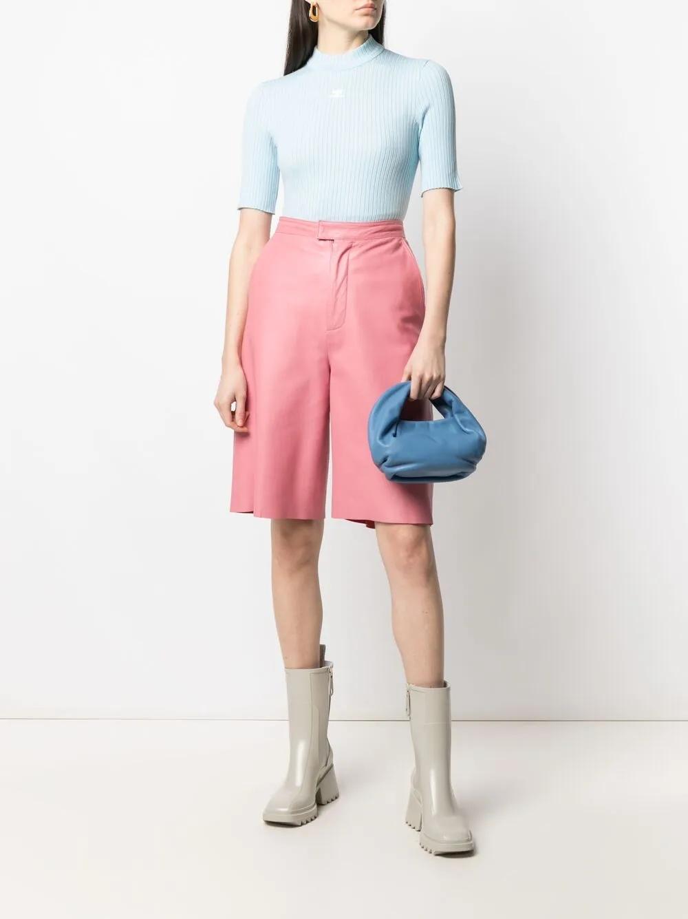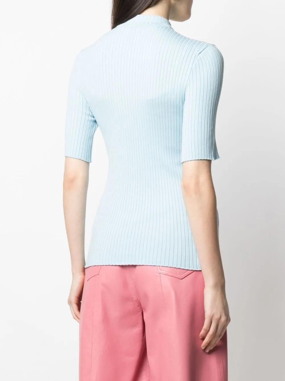 light blue cotton blend logo print to the front ribbed knit round neck short sleeves straight hem