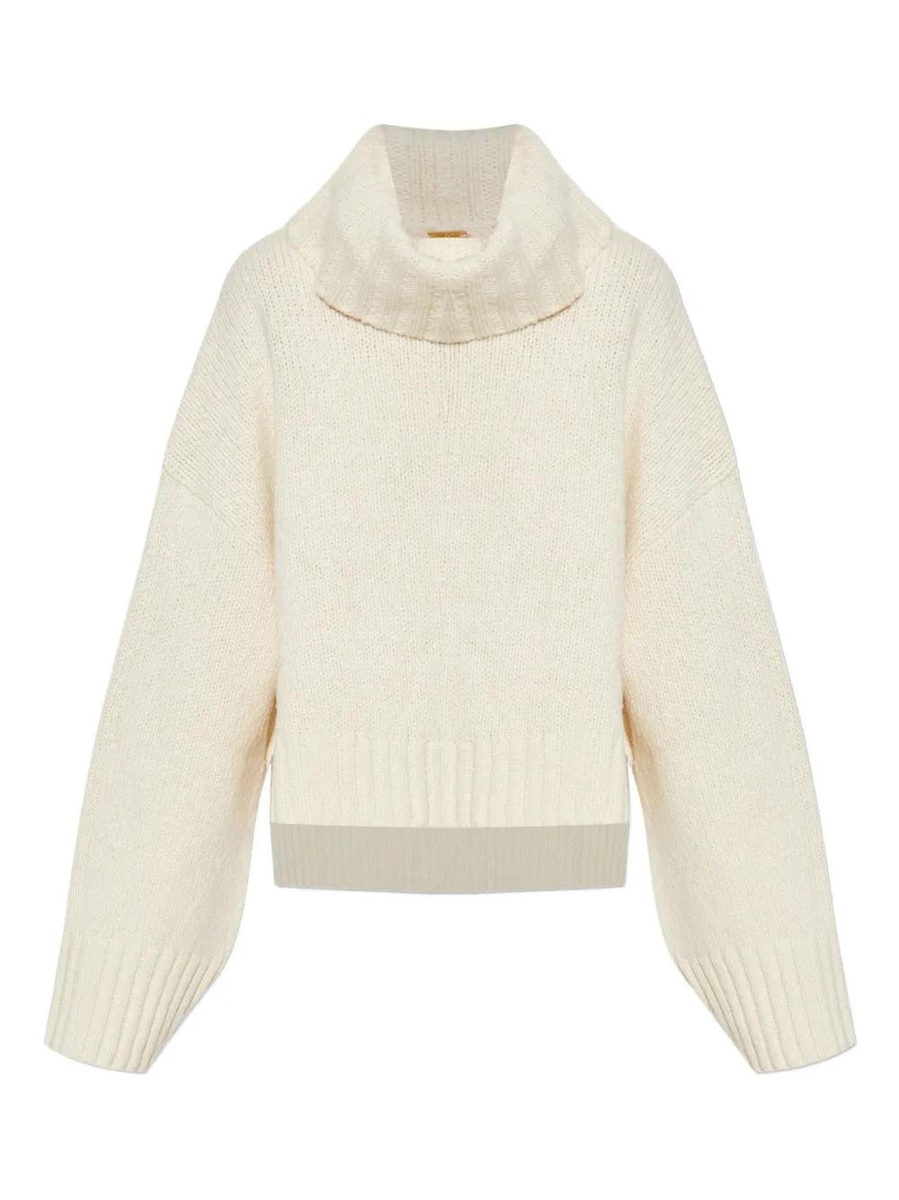 off-white roll neck ribbed knit long sleeves ribbed hem ribbed cuffs