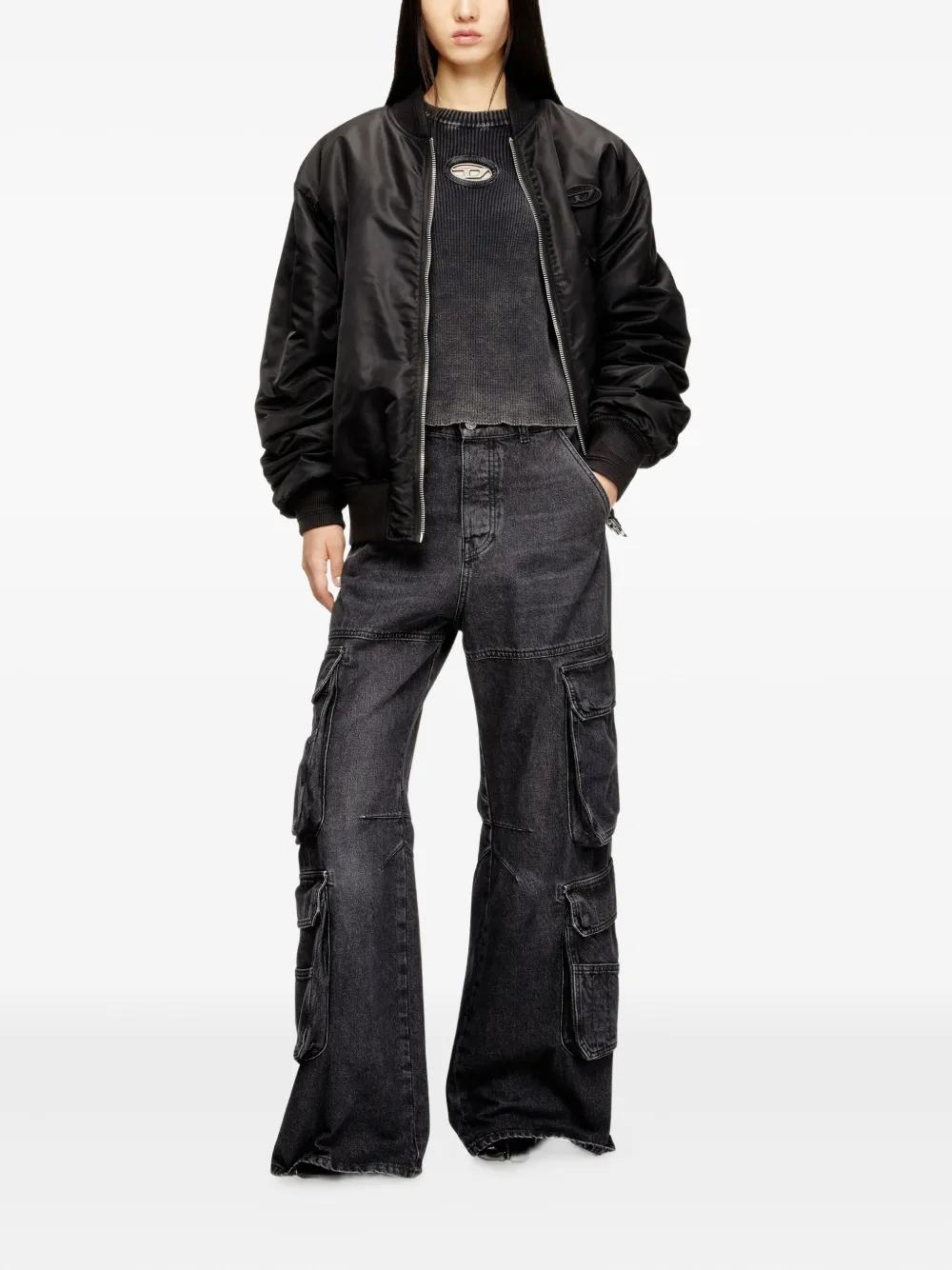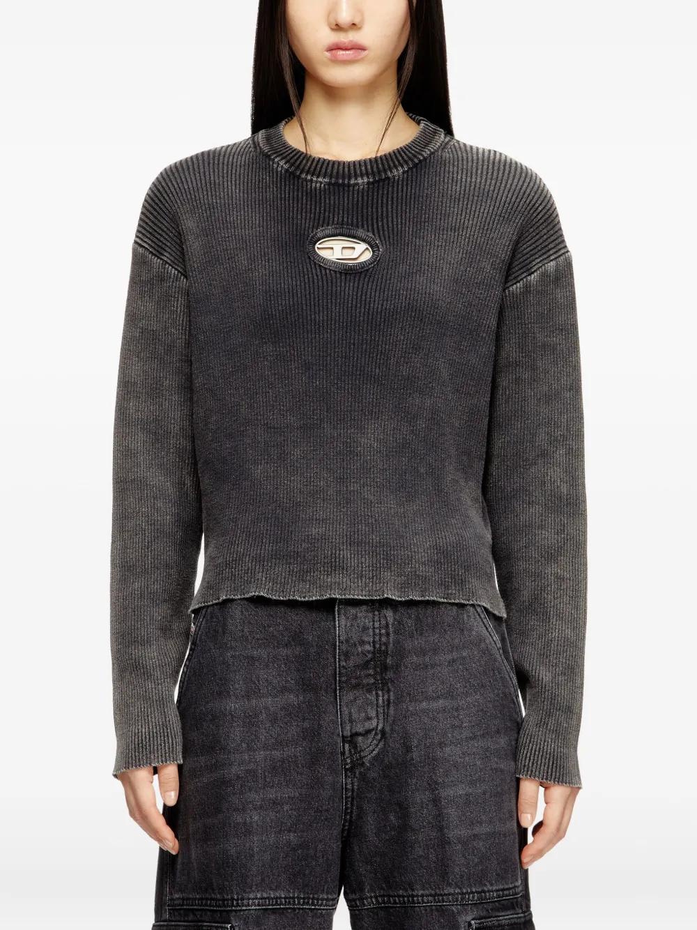 black rib knit metal oval-logo round neck long sleeves cut-out detail
