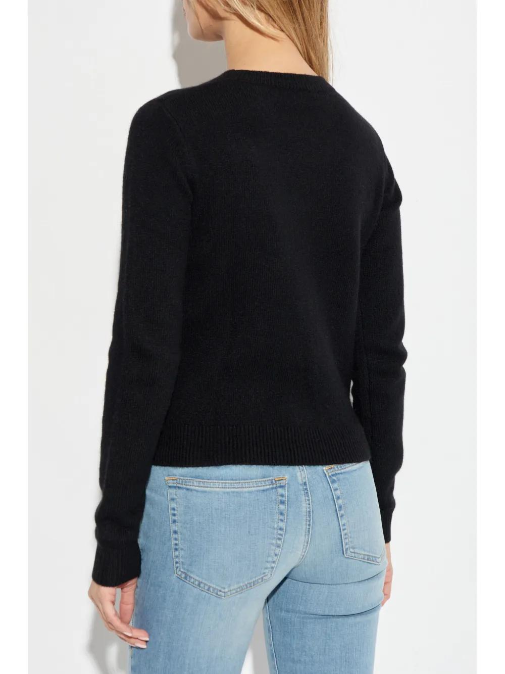 light beige cashmere fine knit horizontal stripe pattern logo patch to the front rhinestone embellishment crew neck long sleeves ribbed cuffs and hem