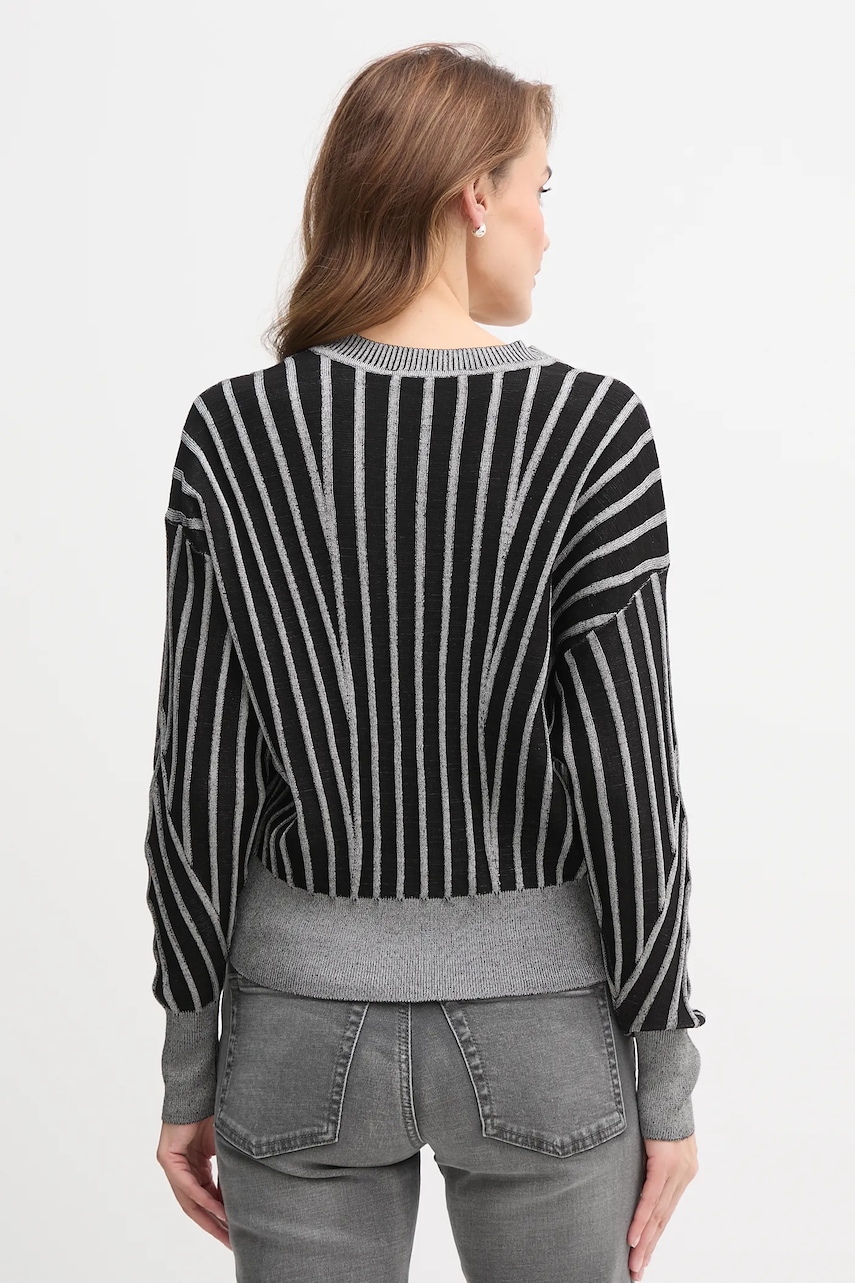 - Luźny krój zapewniający pełną swobodę ruchów. - Ozdobny, spiczasty dekolt. - Krój rękawa z obniżoną linią ramion nie ogranicza mobilności. - Rękawy i dolna krawędź zakończona ściągaczami chroniącymi przed niekorzystnymi warunkami atmosferycznymi. - Cienka, elastyczna dzianina. - Splot z ozdobną, metaliczną nicią. - Długość rękawa(mierzona od dekoltu): 75 cm. - Długość: 58 cm. - Szerokość pod pachami: 56 cm. - Wymiary podane dla rozmiaru: S.